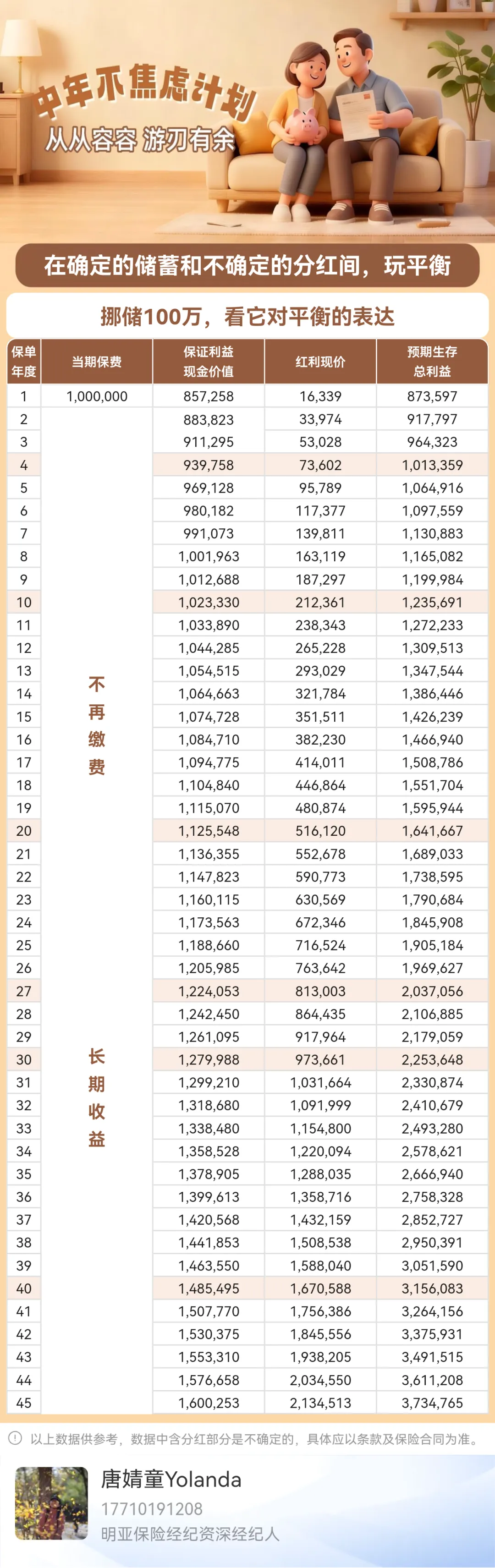 每年的保单价值,都在现金价值表里,