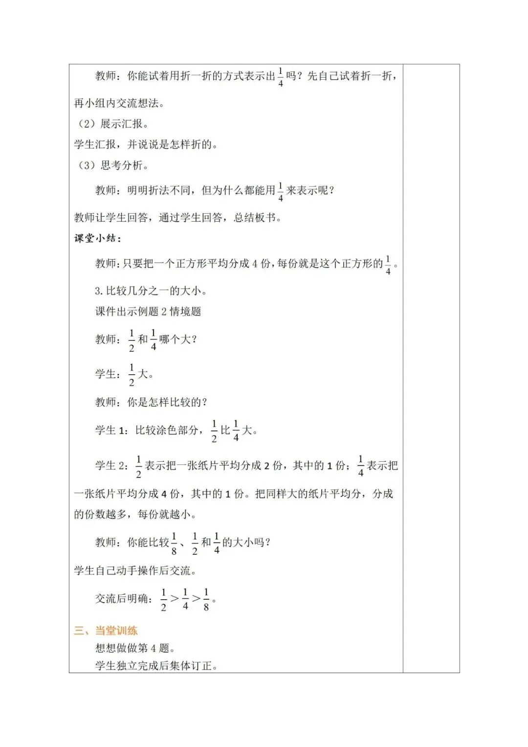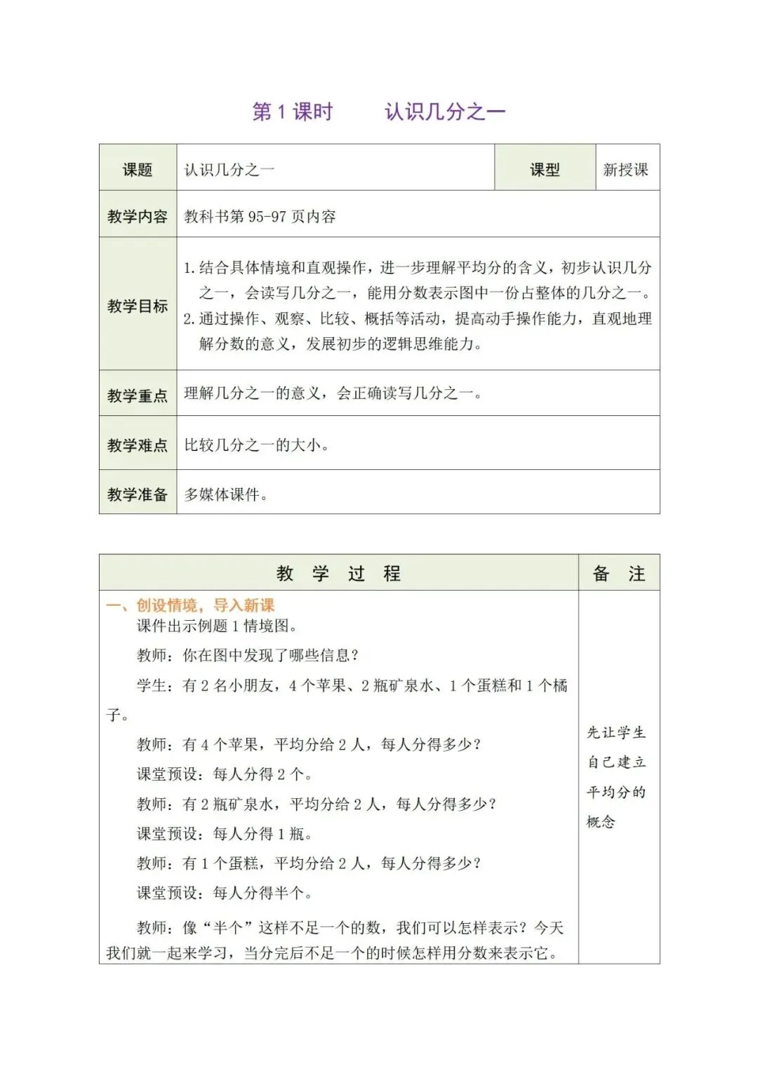 2026春新教材苏教版三年级数学下册教案《认识几分之一》