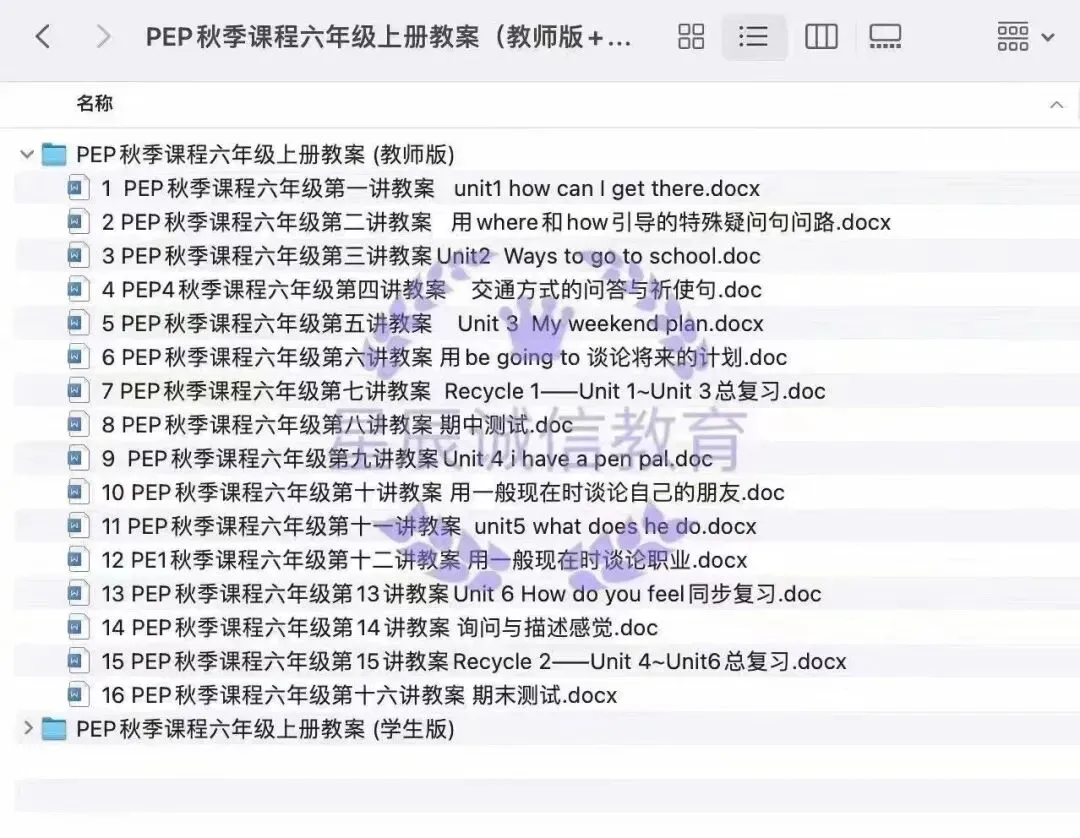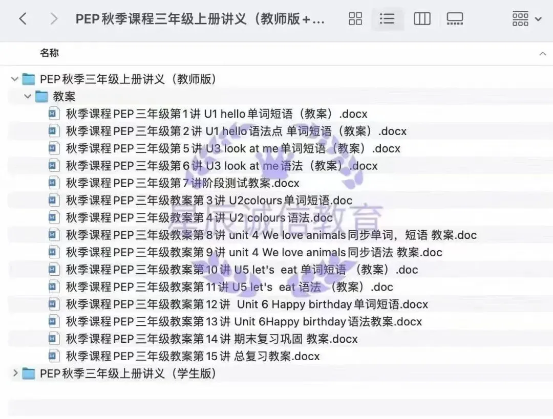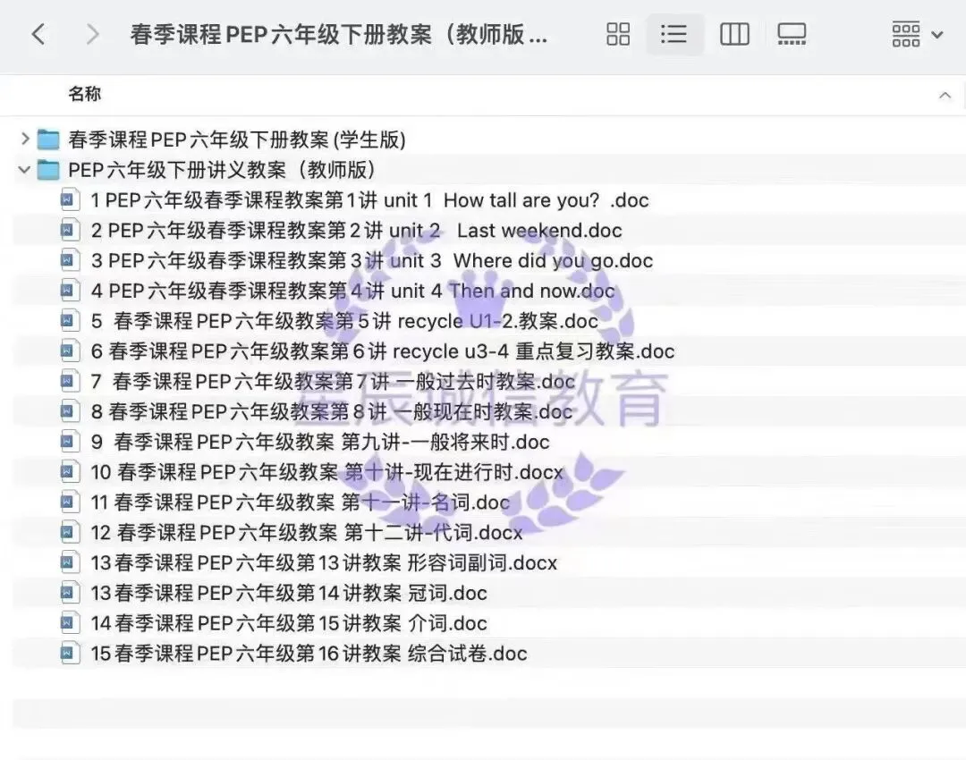 >小学英语人教PEP讲义齐全包含3-6年级上下册讲义!讲义+练习题word可编辑!分为教师版+学生版!目录如下图所示