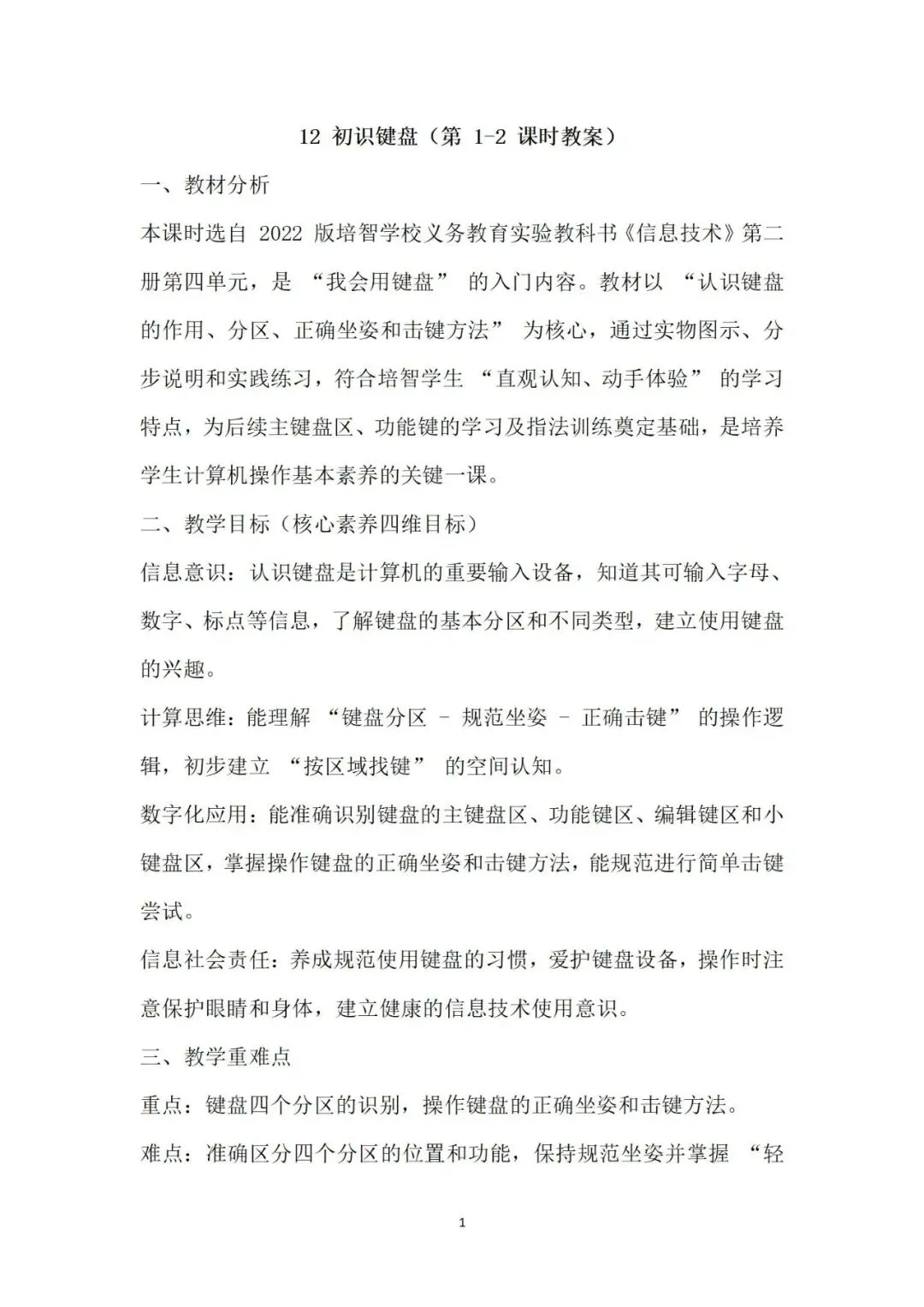 培智信息技术第六册核心素养教案+教学计划,可下载!