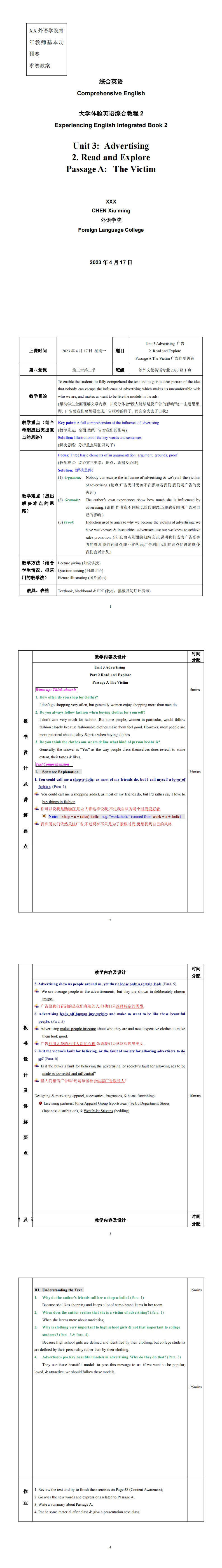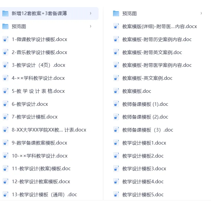 >18款教案模板word版(电子版可编辑)