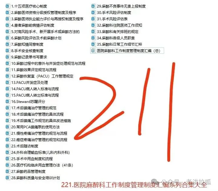 221.医院麻醉科工作制度管理制度汇编系列合集大全