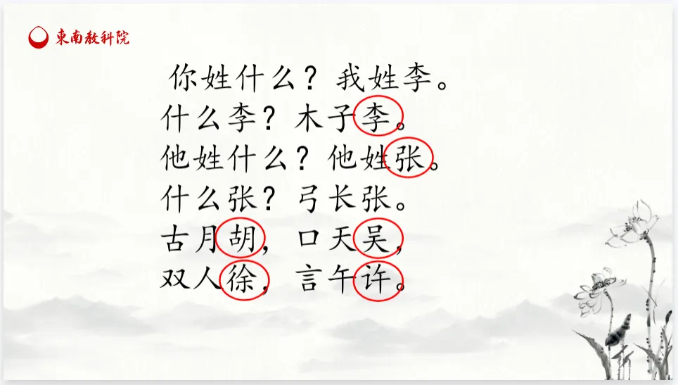 (2)学生自己读,圈画姓氏。