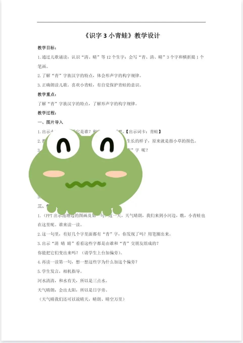 3.正确朗读儿歌。喜欢小青蛙,有自觉保护青蛙的意识。
