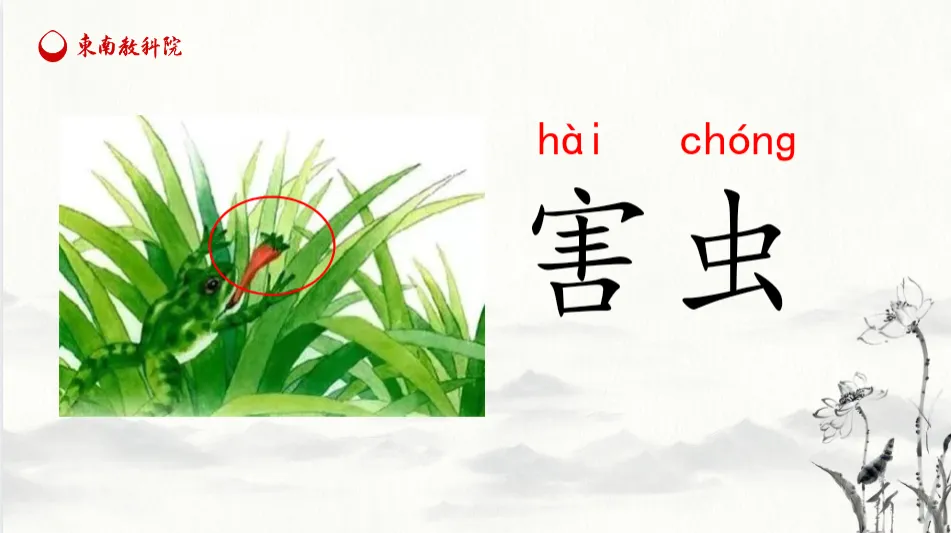7.就在我们认真学习汉字的时候,瞧,谁出现了?(出示图及词卡:害虫)指名认读词卡。