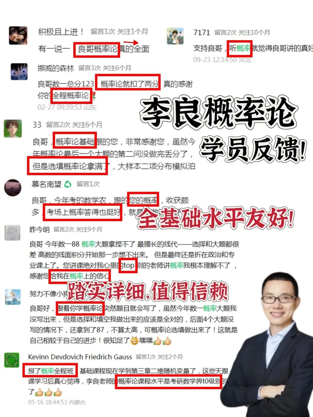 最近几年,有不少同学在良哥的陪伴下拿到了满意的分数,良哥也是感到高兴!也对自己27版概率论辅导讲义充满信心,今天就给大家介绍一下!