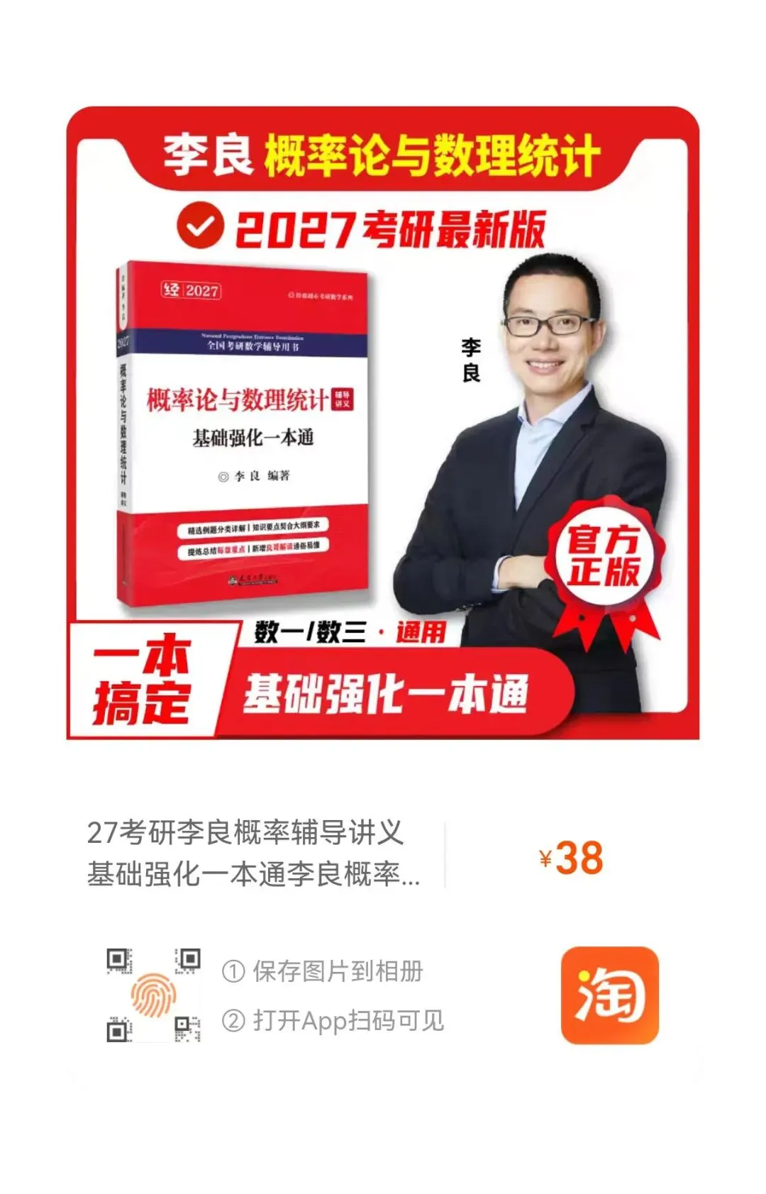 【淘宝】7天无理由退货 https://e.tb.cn/h.7iDkppn5SMWmN8k?tk=B9cDU113G5E CZ057 「27考研李良概率辅导讲义基础强化一本通李良概率讲义包含基础+强化」