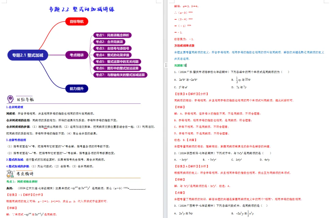 每个章节知识导图,目标导航,考点精讲,匹配典型例题,方法与规律点拨。课程编排以5+7搭配安排,即5讲上册复习,7讲下册预习。题量丰富,可自行挑选题目进行学习巩固。后台回复【寒假课程】可预览电子版。