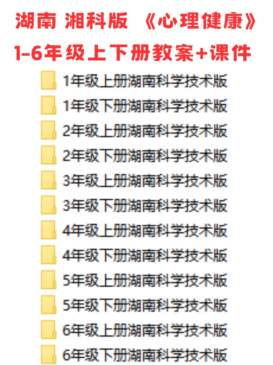 >湖南湘科版1-6年级上下册《心理健康》教案+课件