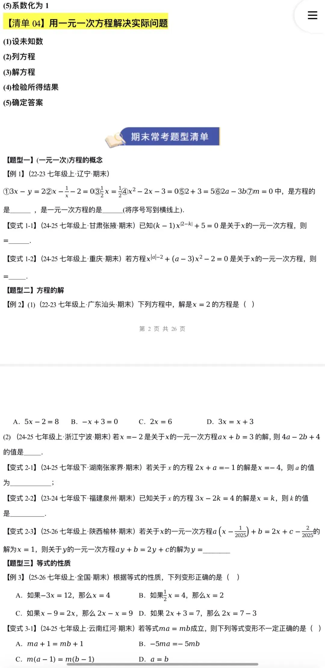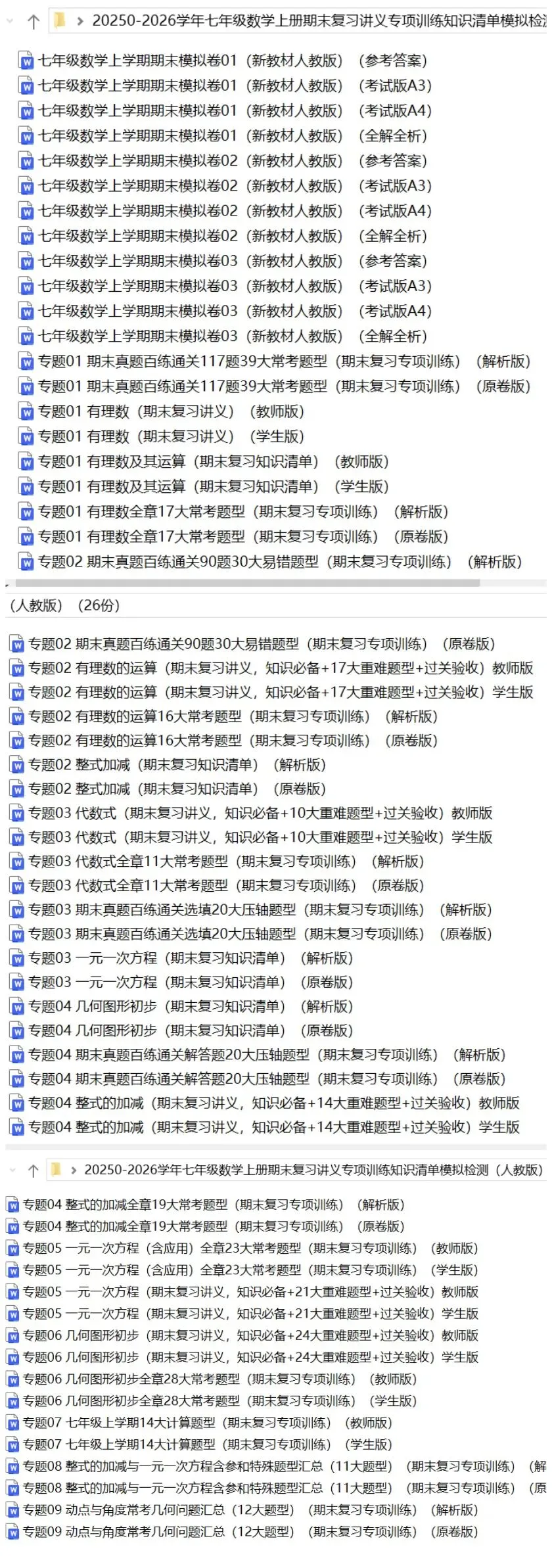 2025年七上数学人教版:期末复习讲义综合检测专项训练知识清单26份含答案解析 | 完整word版文档可下载打印