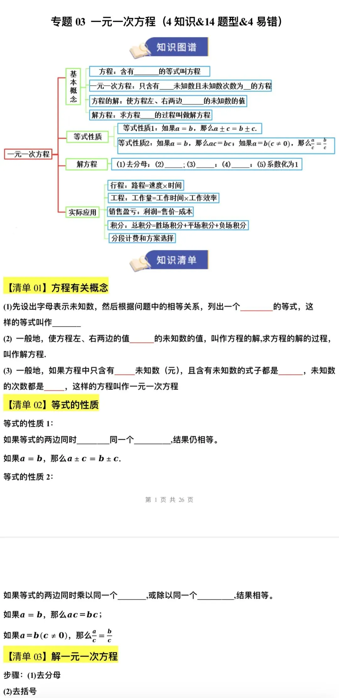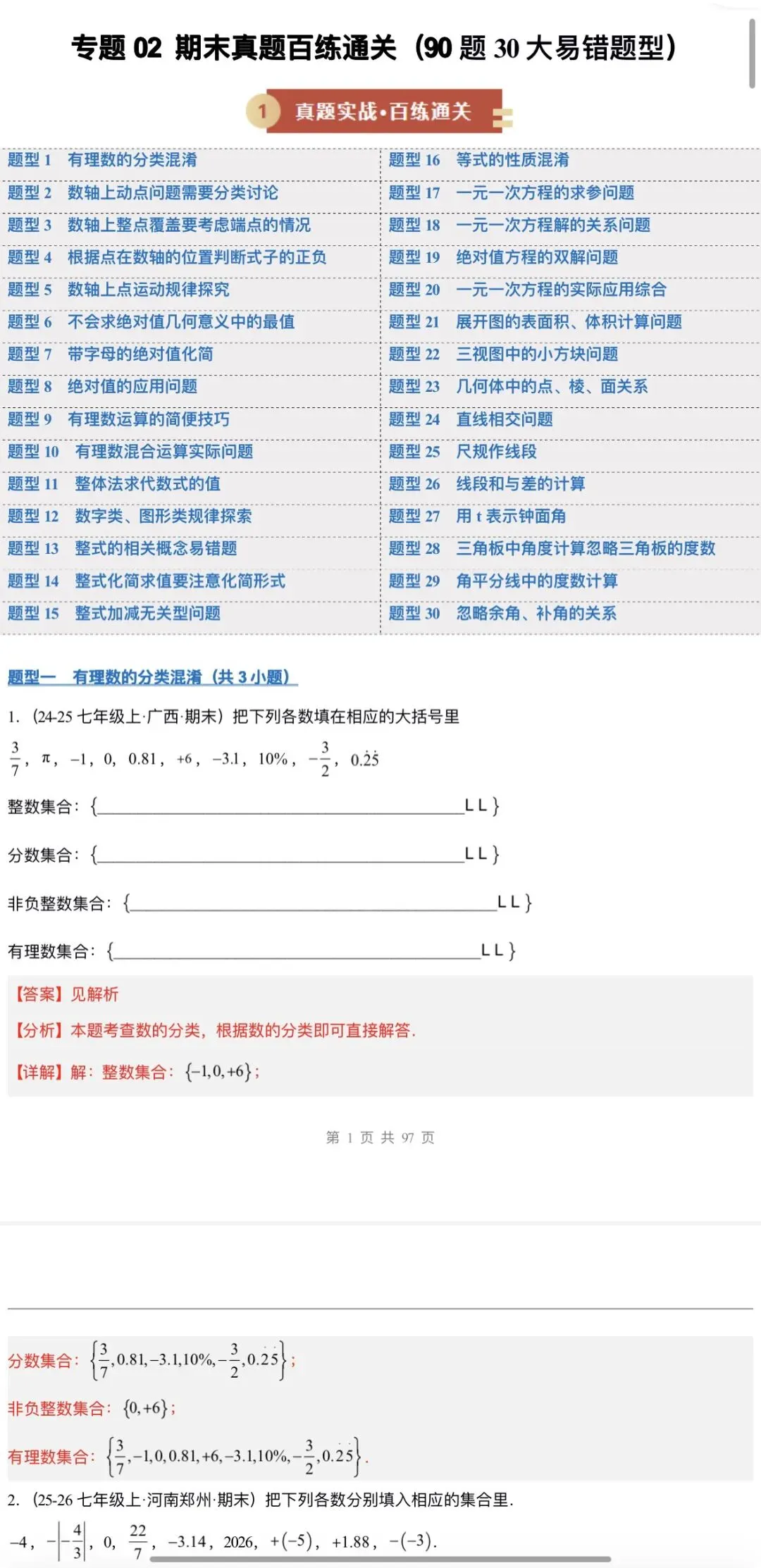 >2025年七上数学人教版:期末复习讲义综合检测专项训练知识清单26份含答案解析 | 完整word版文档可下载打印