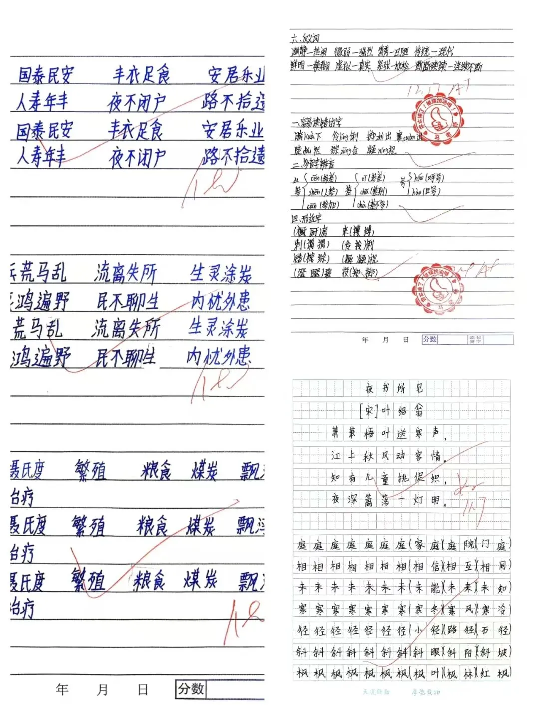 作业布置做到了分层设计、总量适中,批改及时细致,评语富有针对性和激励性,能有效帮助学生查漏补缺。