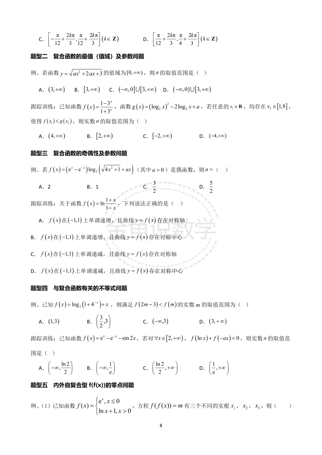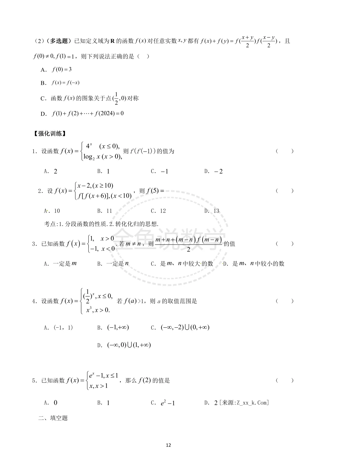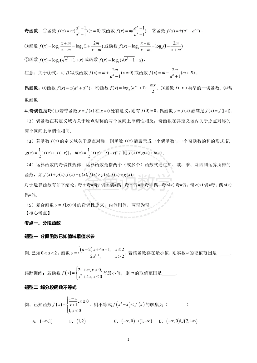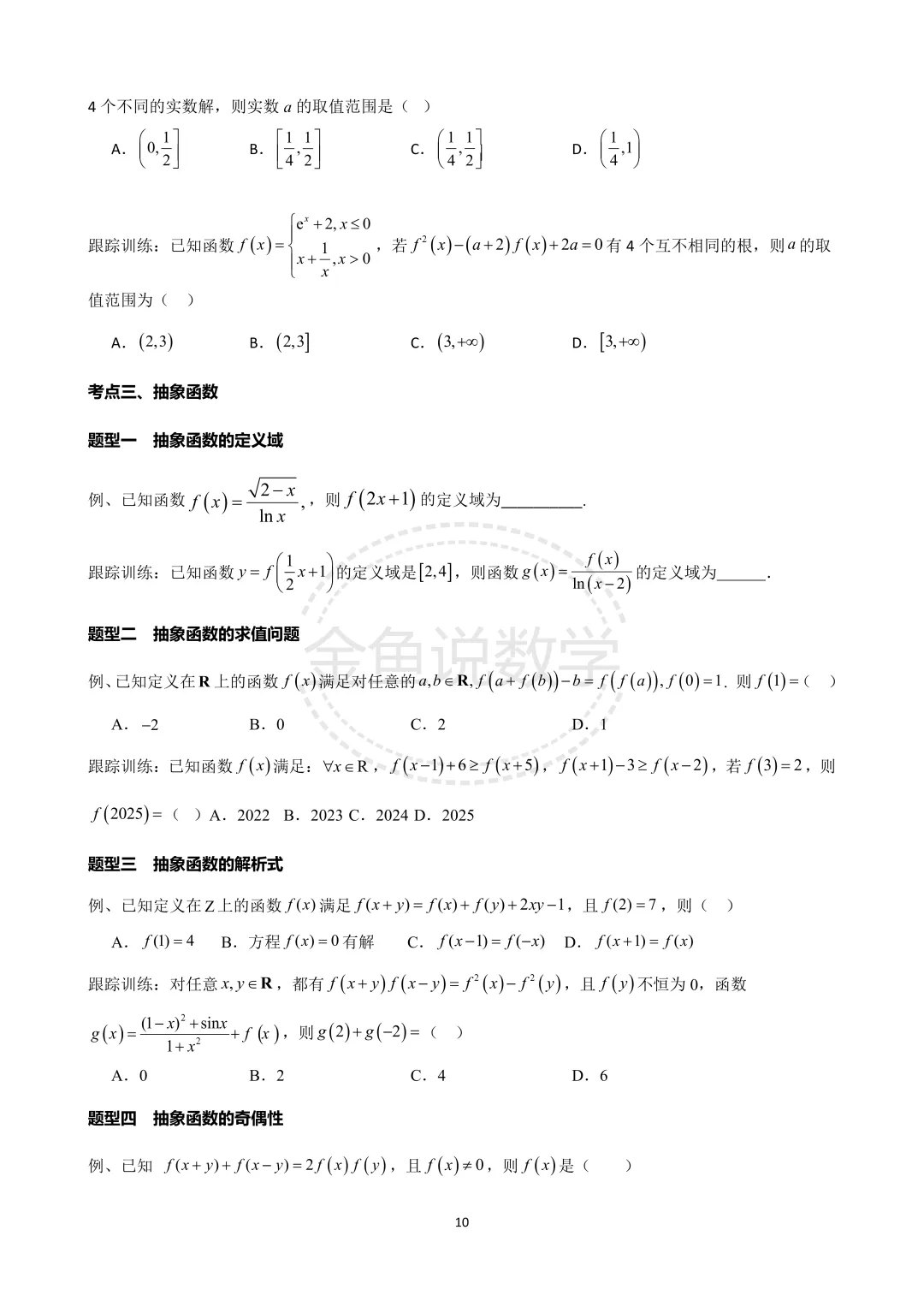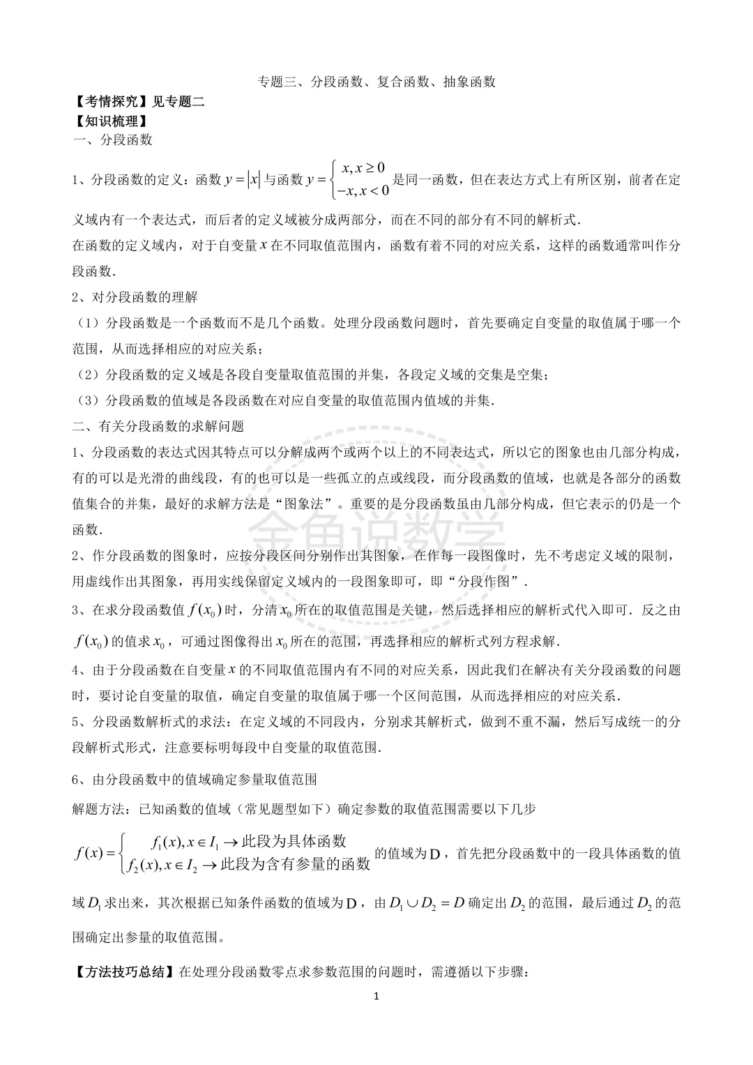 >2026届高三培优专题讲义之专题三、分段函数、复合函数、抽象函数
