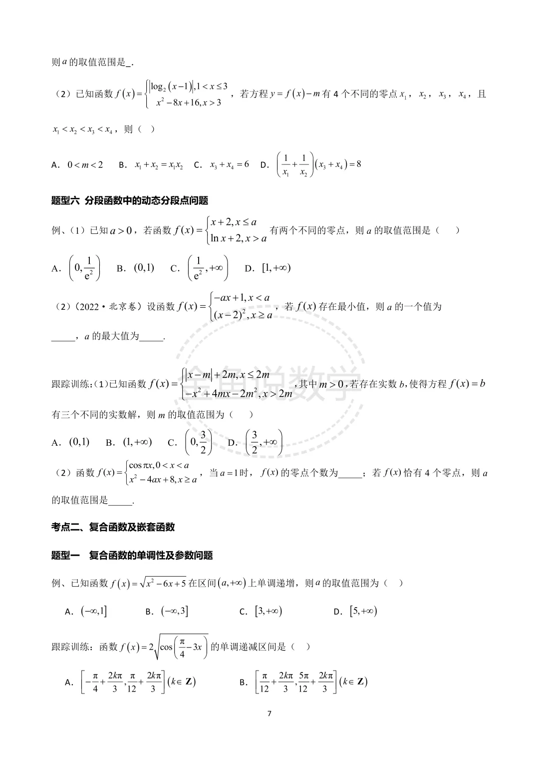 2026届高三培优专题讲义之专题三、分段函数、复合函数、抽象函数