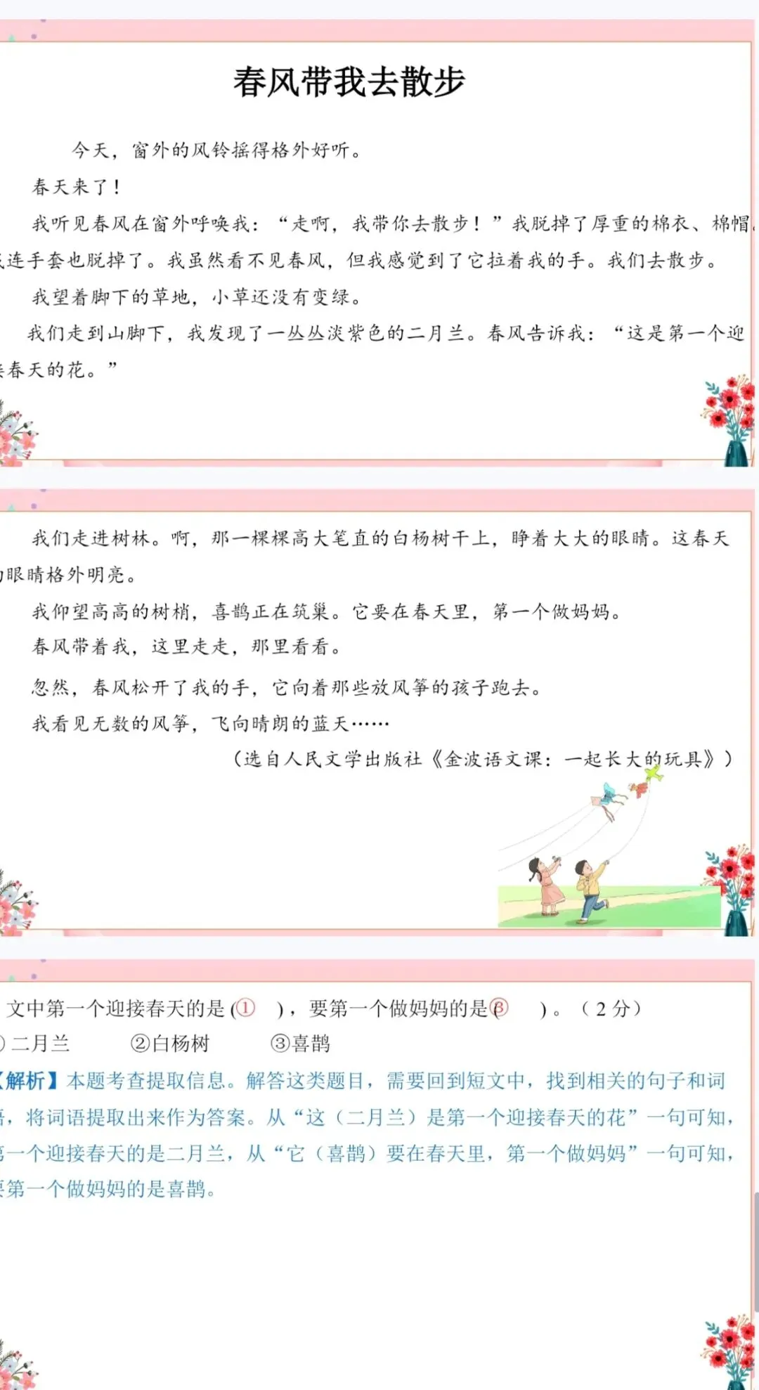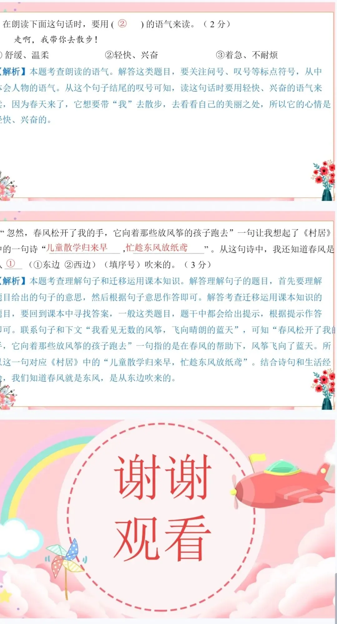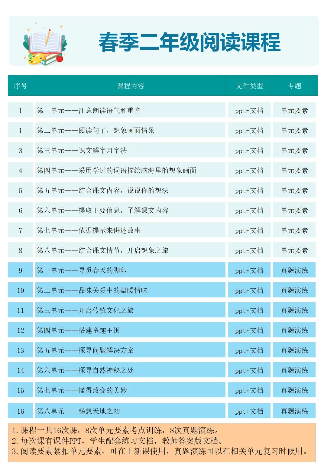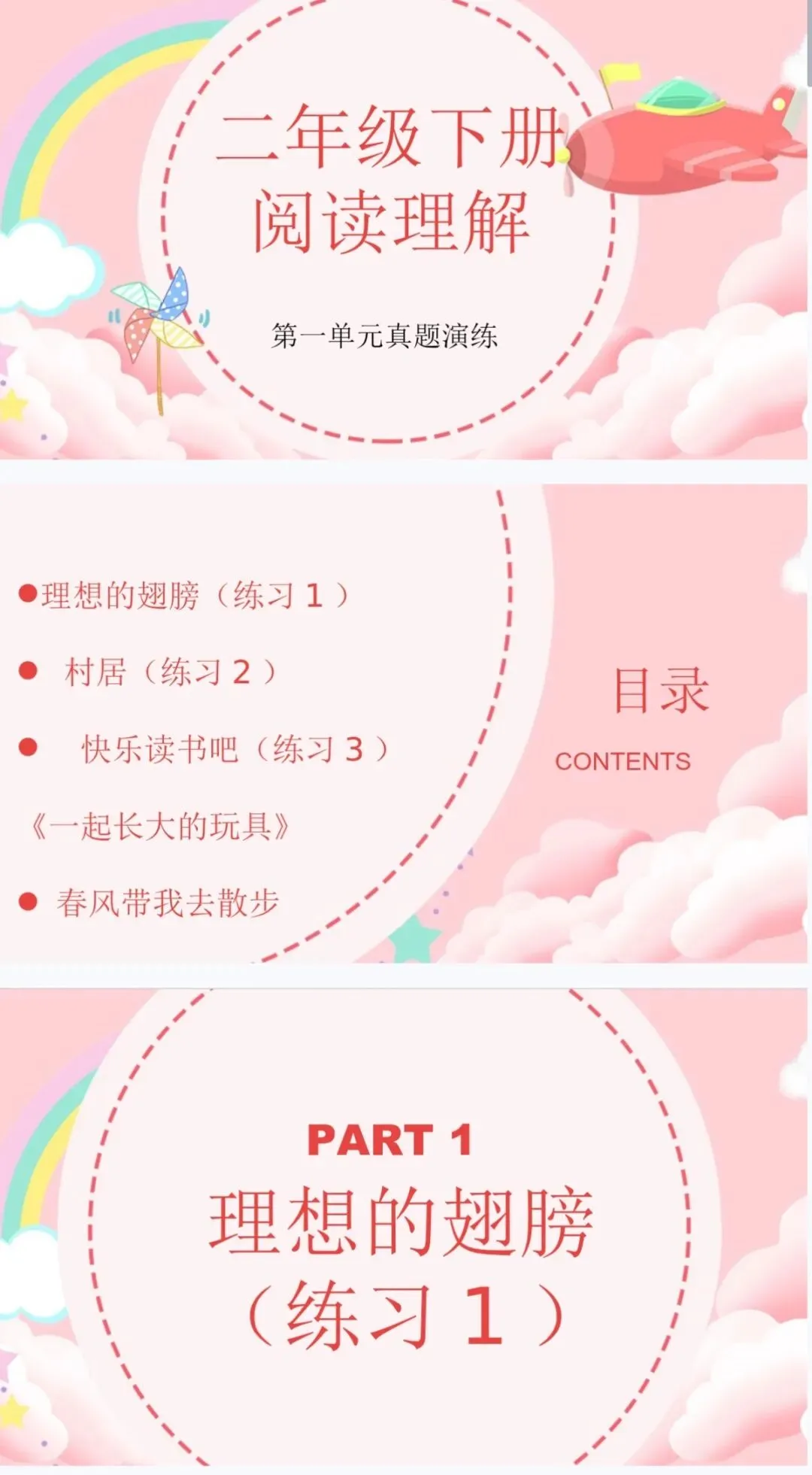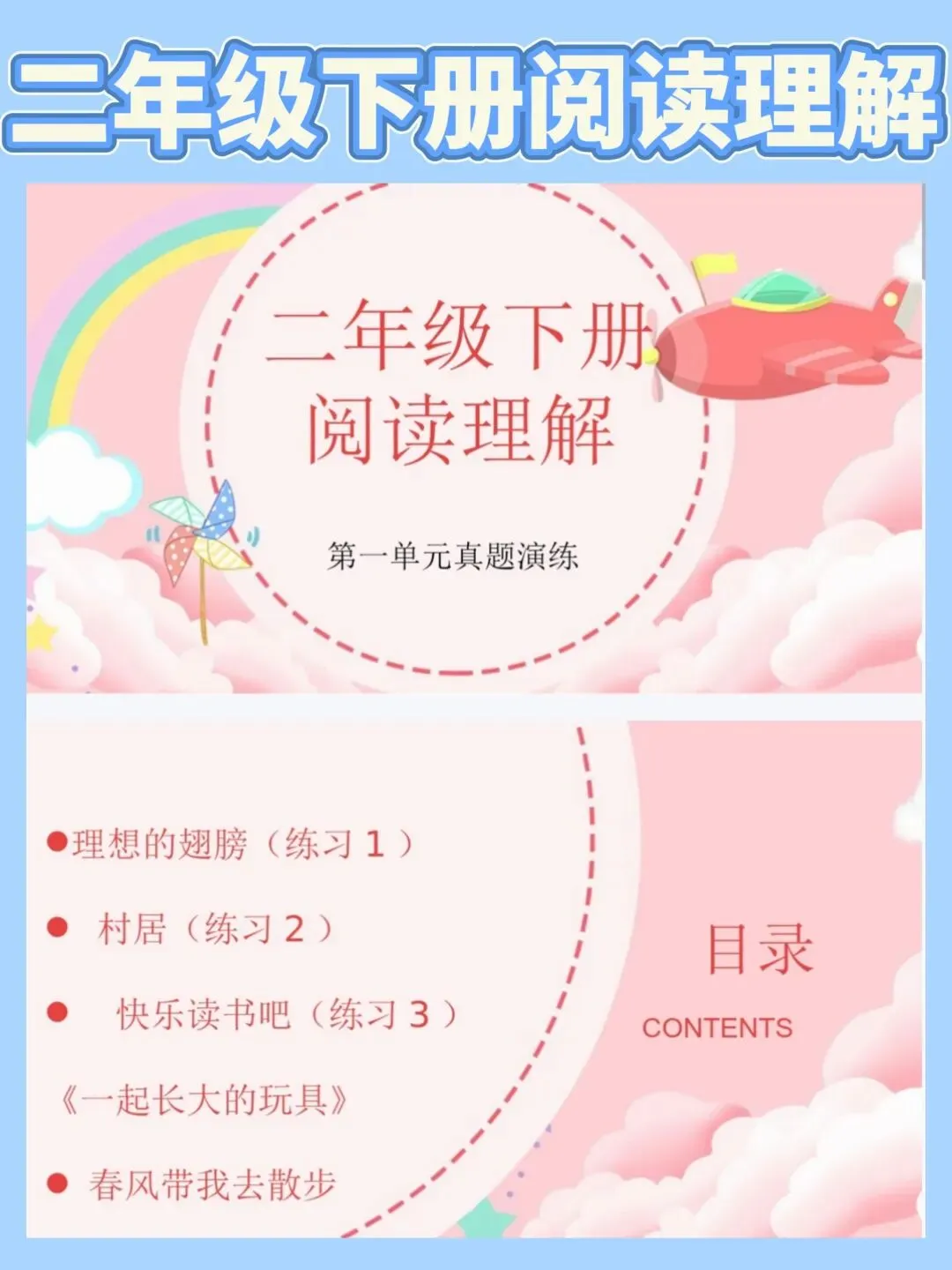 >二年级下册阅读理解课件资料|第一单元真题演练|课件、练习文档、答案文档