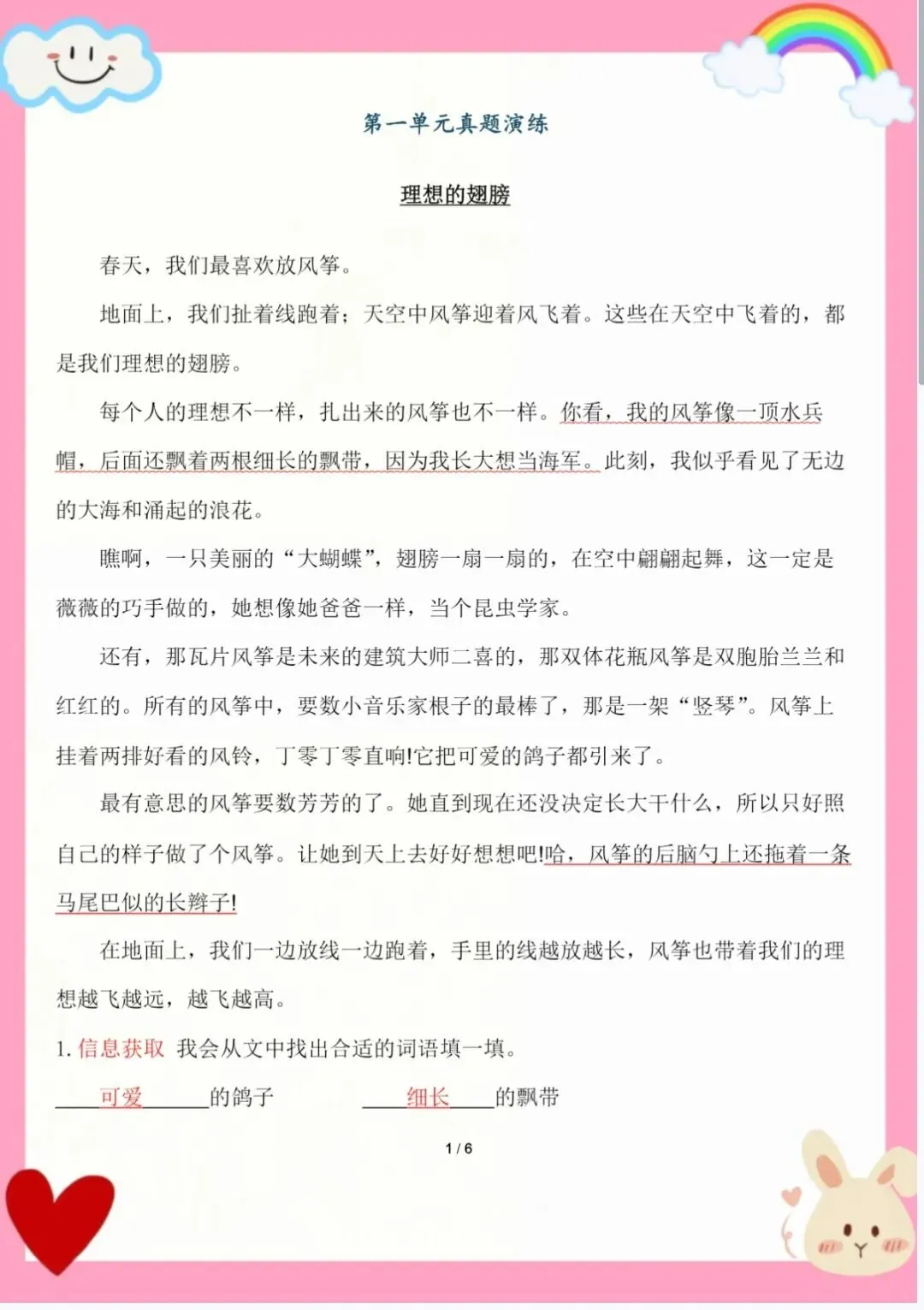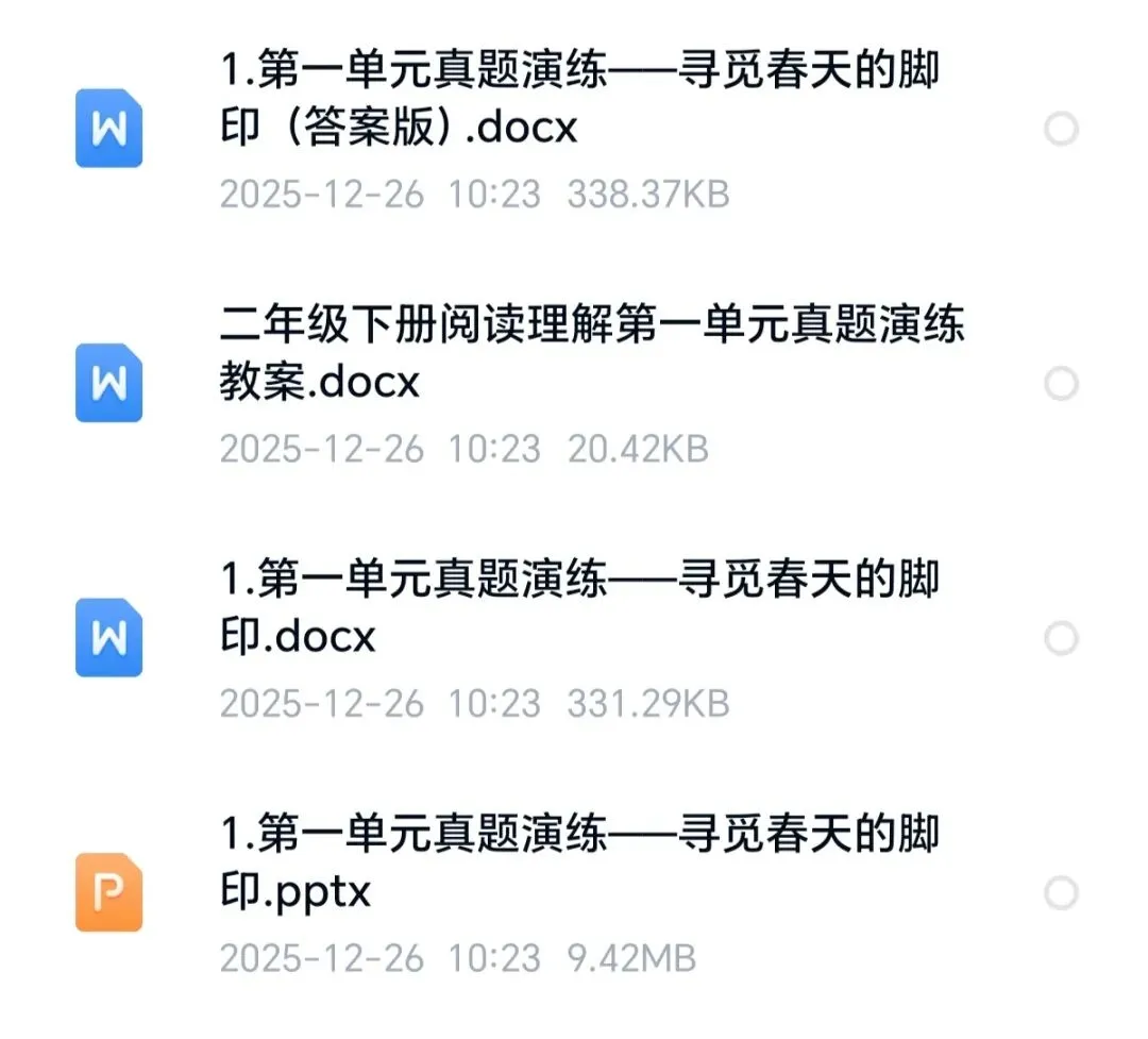 二年级下册阅读理解课件资料|第一单元真题演练|课件、练习文档、答案文档