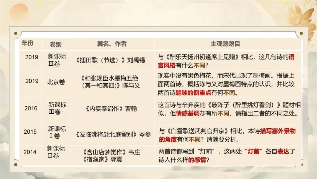 【高考诗歌阅读理解复习】诗歌各种题材答题精讲课件PPT及教案