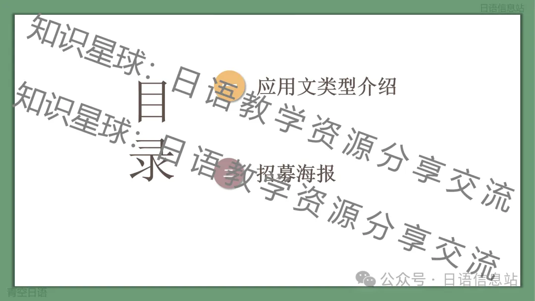 (这里仅展示少部分资料,此课件仅上传至知识星球:“日语教学资源分享与交流”。如需完整版无水印ppt课件,加入“知识星球:日语教学资源分享与交流”即可下载。加入星球的方式可参照文末说明。)