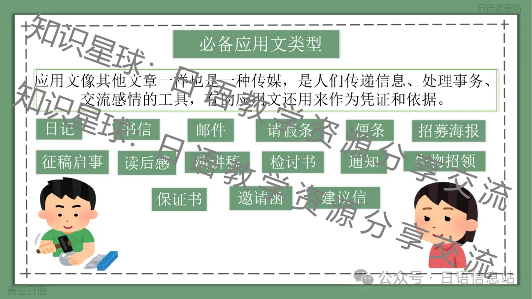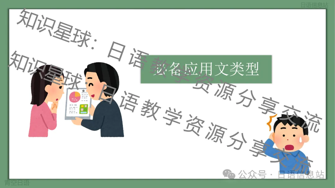 迄今为止,新题型作文课件已经有是多种类型,十多个课件都上传到了知识星球:日语教学资源分享与交流。除了新题型作文以外,也有大作文的课件,还有基础入门作文的课件。