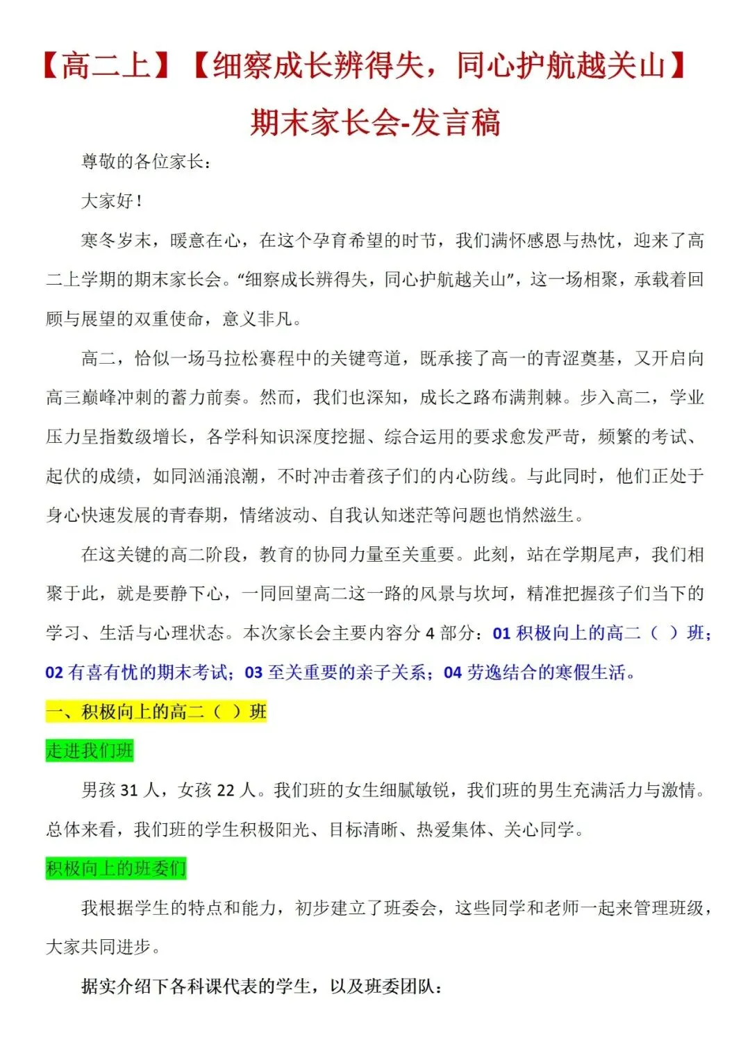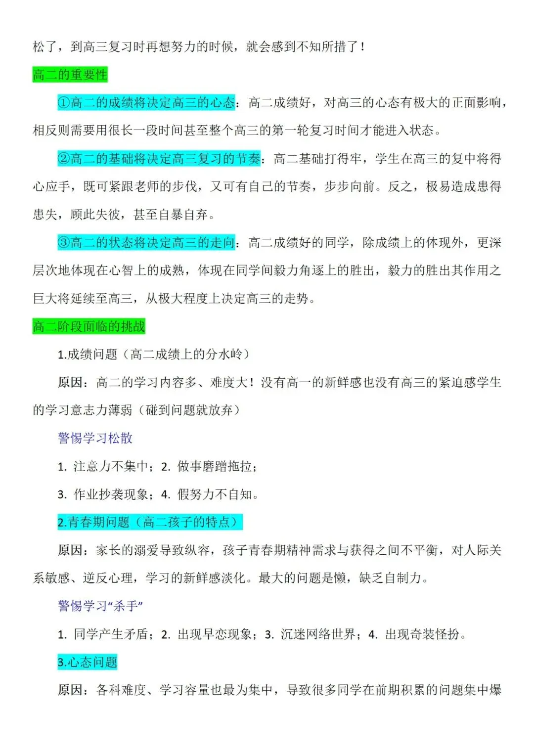 📊 聚焦高二,直面挑战:✅ 学情深度分析:针对高二“效率低下、情绪内耗、偏科松懈”等典型问题归因✅ 沟通策略指导:提供青春期亲子沟通话术与原则,缓解家庭焦虑✅ 寒假精准规划:包含弱科突破方法、作息表示例、各科复习建议✅ 升学前期准备:引导学生初步思考专业方向,明确高三冲刺目标