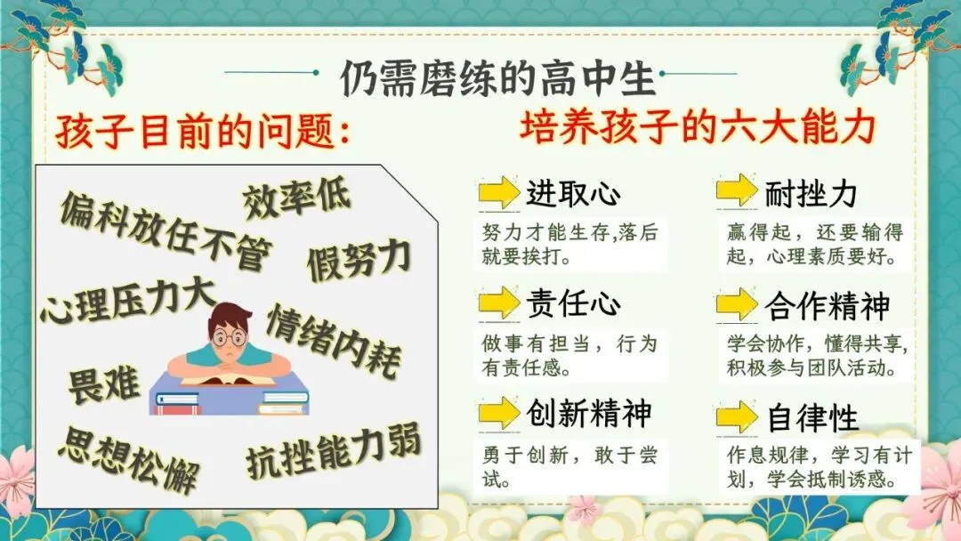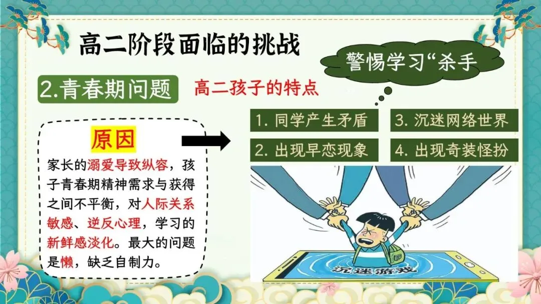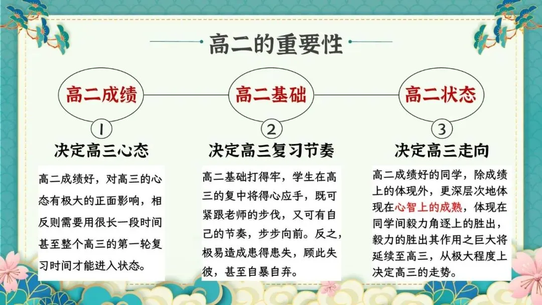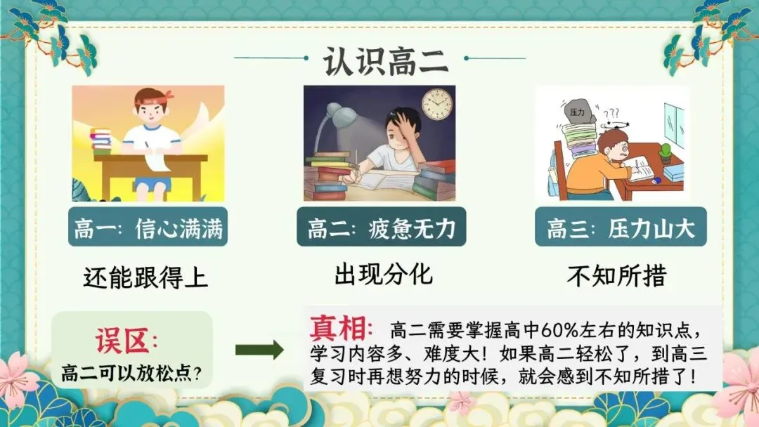 PPT内容紧密贴合高二学生心理与学业特点,助力班主任有效组织一场有深度、有指导、能凝聚家校共识的