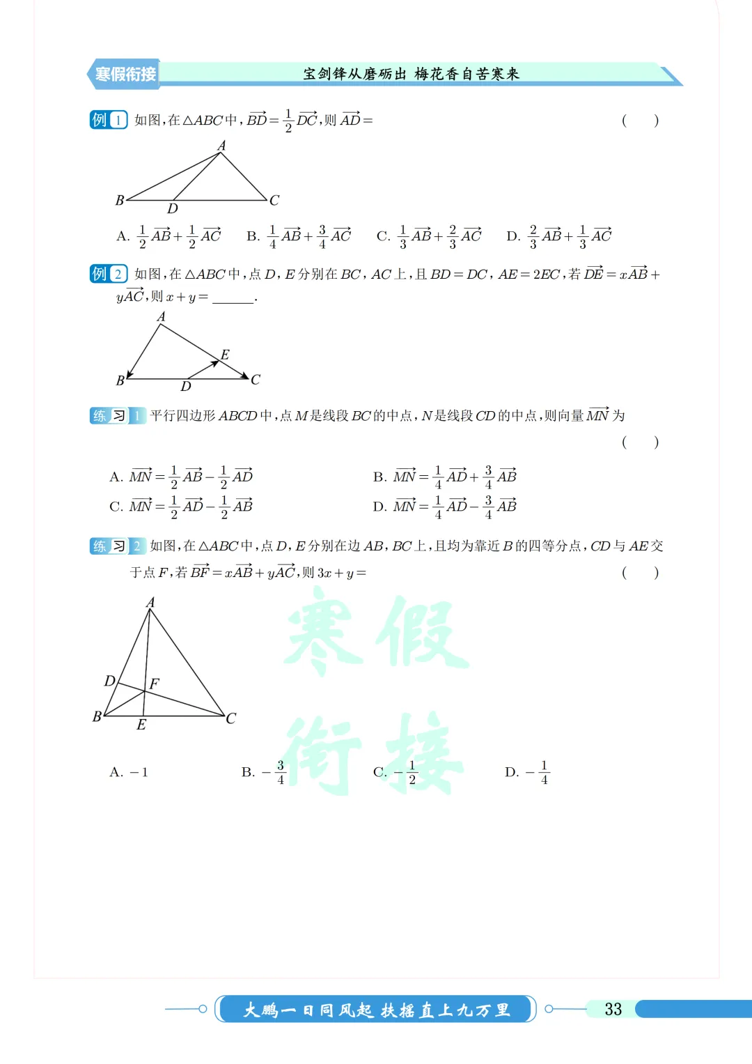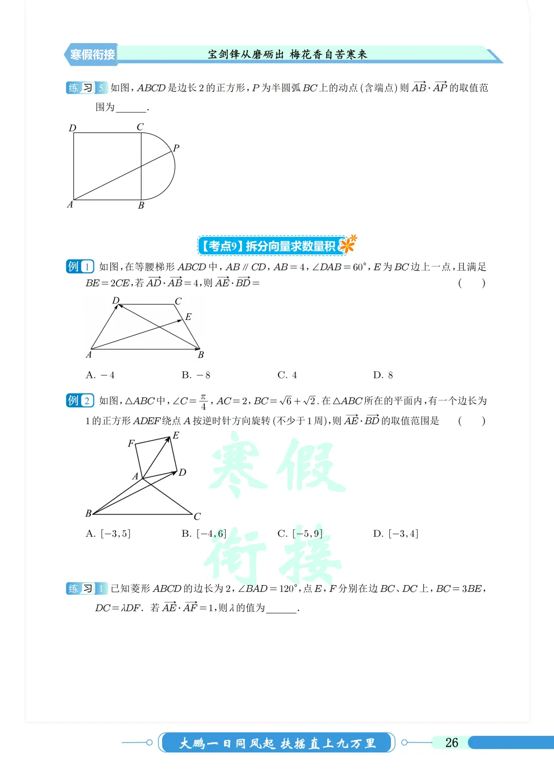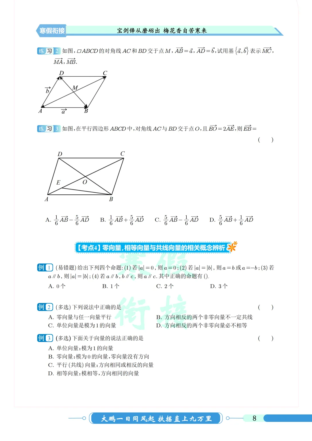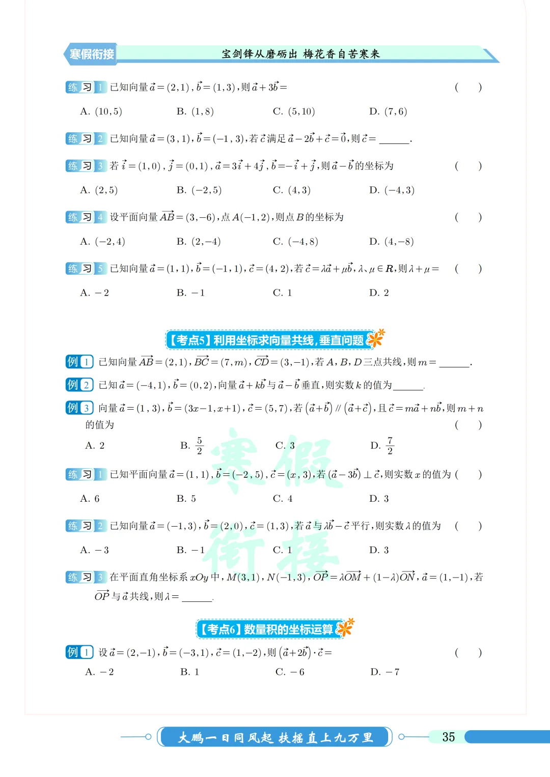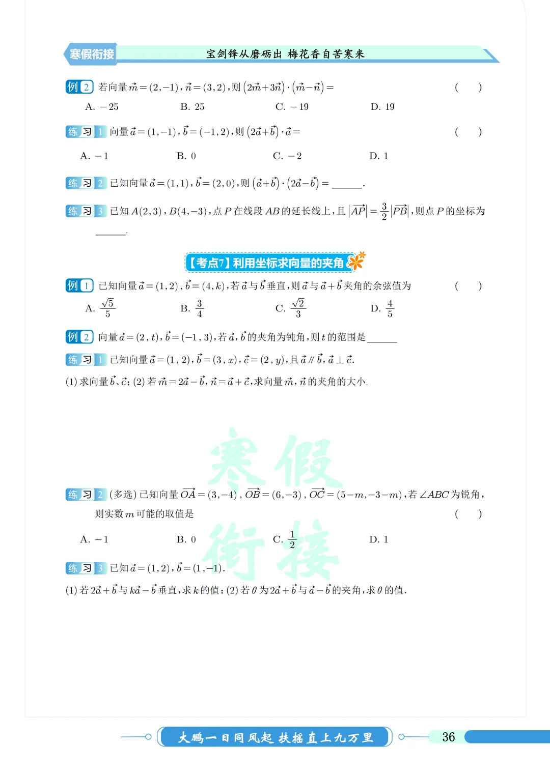 本学期时间较长,部分地区期末要考下学期的向量,