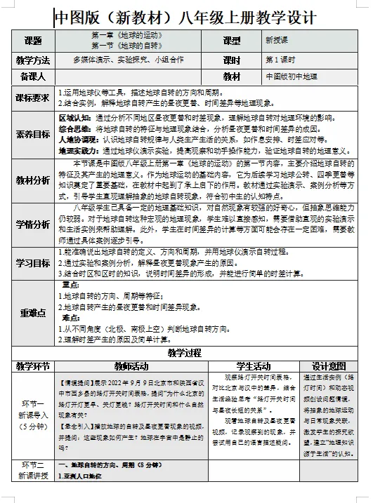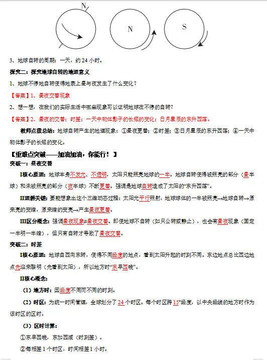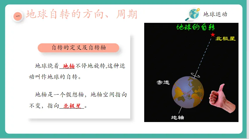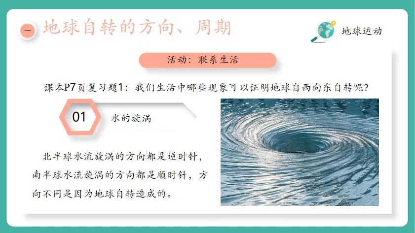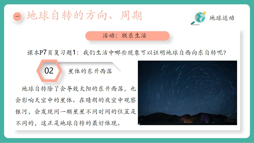 通过本节课的学习,我们不仅掌握了地球自转的基本特征,还了解了其产生的各种现象及影响,有助于我们更深入地认识地球的运动规律,以及地球与宇宙环境的关系。