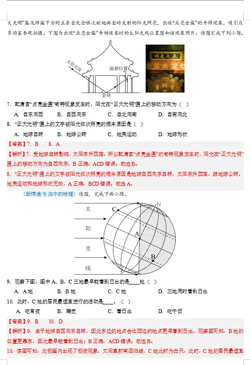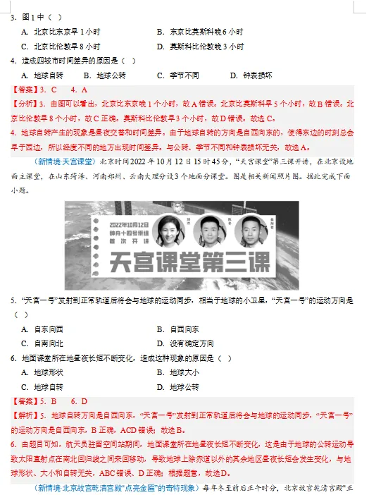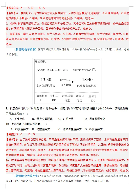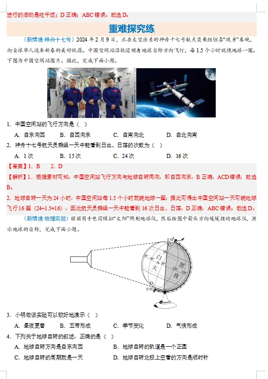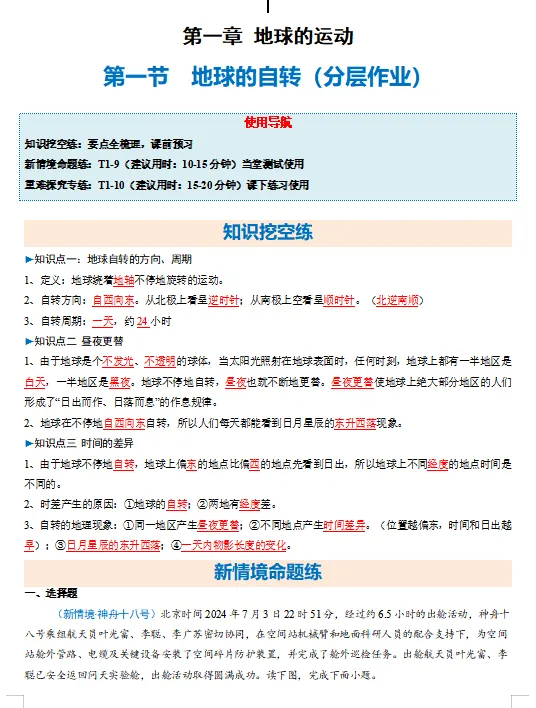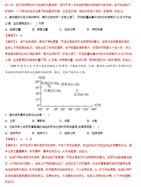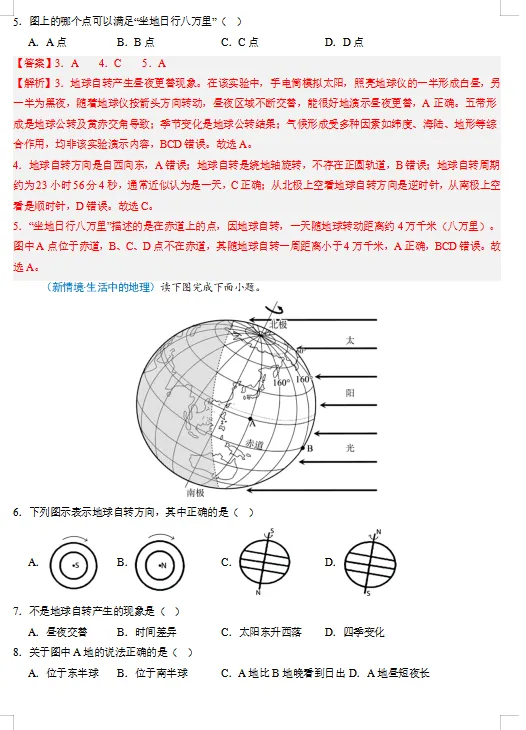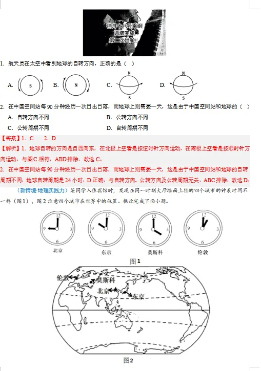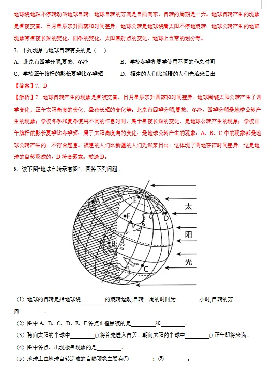 2.结合实例,说出地球自转产生的主要自然现象及其对人们生产生活的影