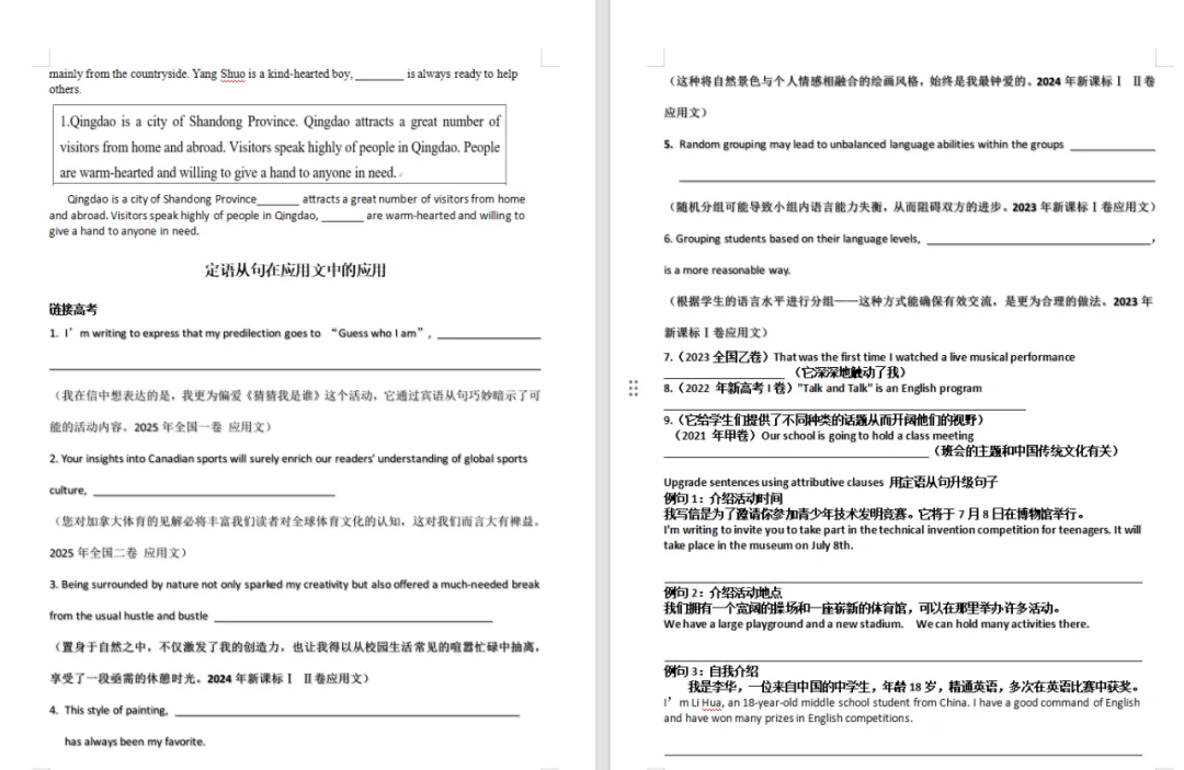 所有教学案例均选自近年高考真题,确保学习内容与考试要求无缝对接。每个语法点的讲解都置于具体的写作情境中。