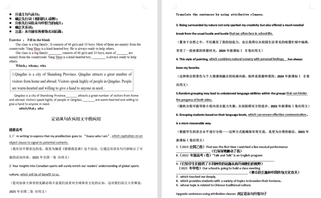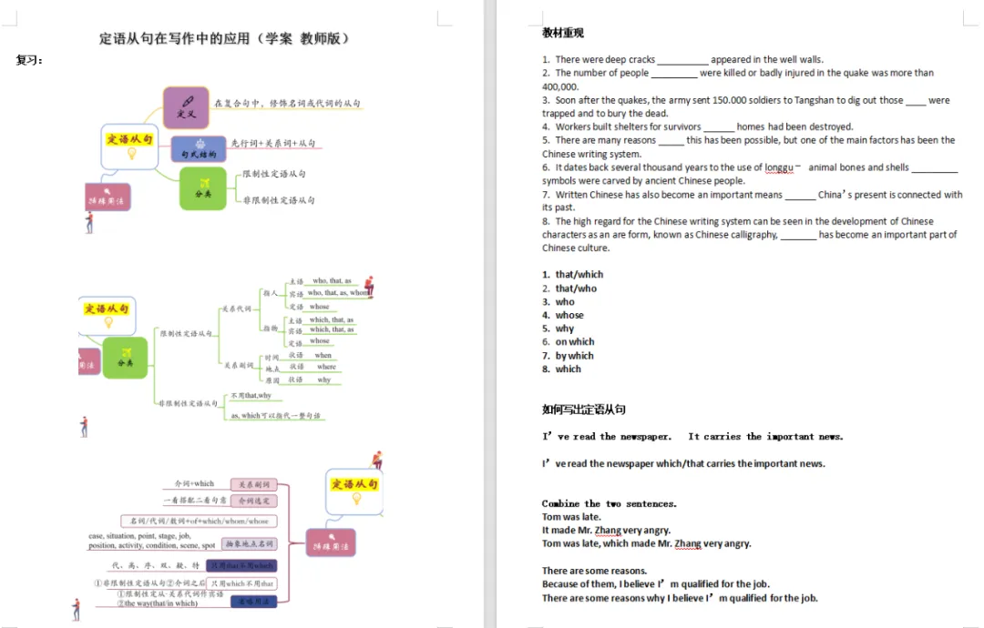 本课件以高考真题为基础,系统梳理定语从句在语法填空、应用文、读后续写中的考查形式;