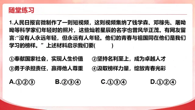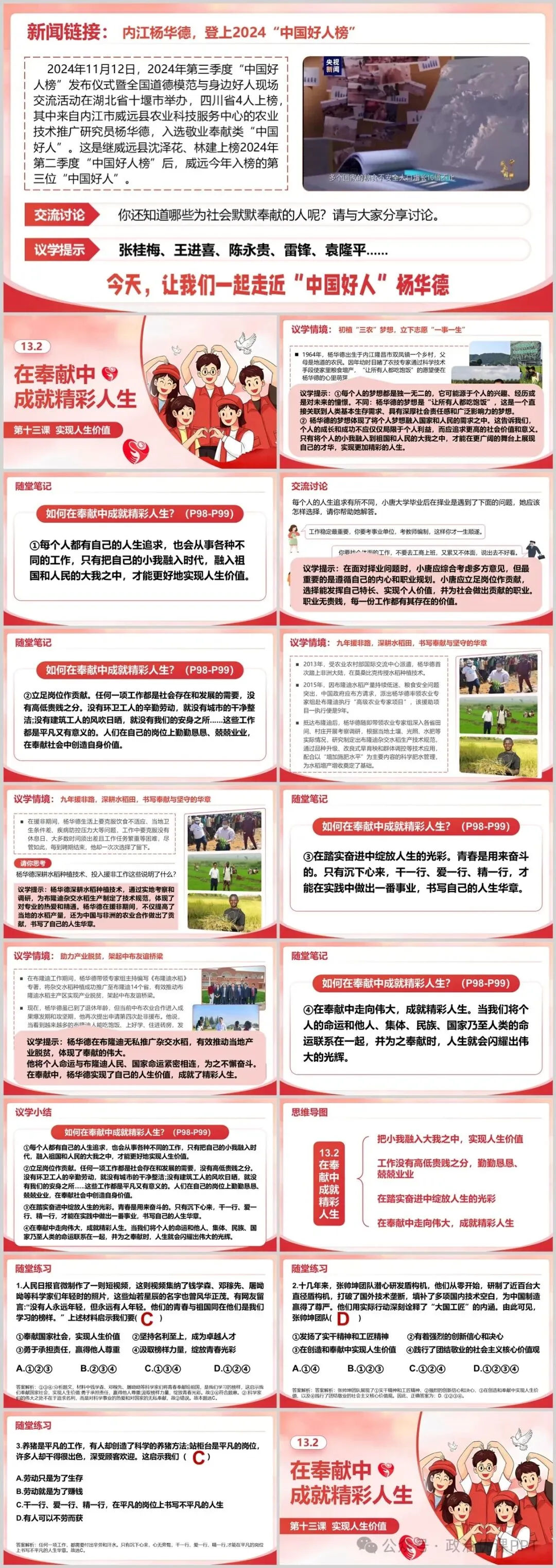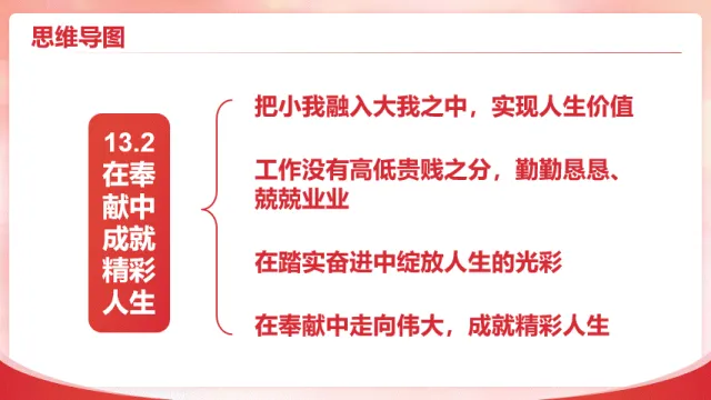 本期【会员群】更新课件13.2《在奉献中成就精彩人生》,本次课件内容是2024秋统编版道德与法治七年级上册第四单元第十三课第二框,共17页,建议教学时长为1课时。