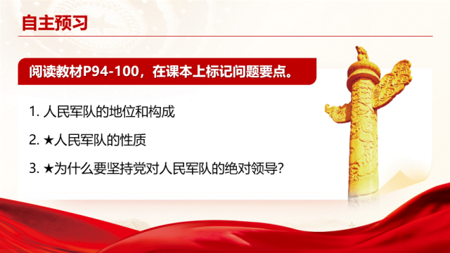 重点:人民军队的性质;为什么要坚持党对人民军队的绝对领导?