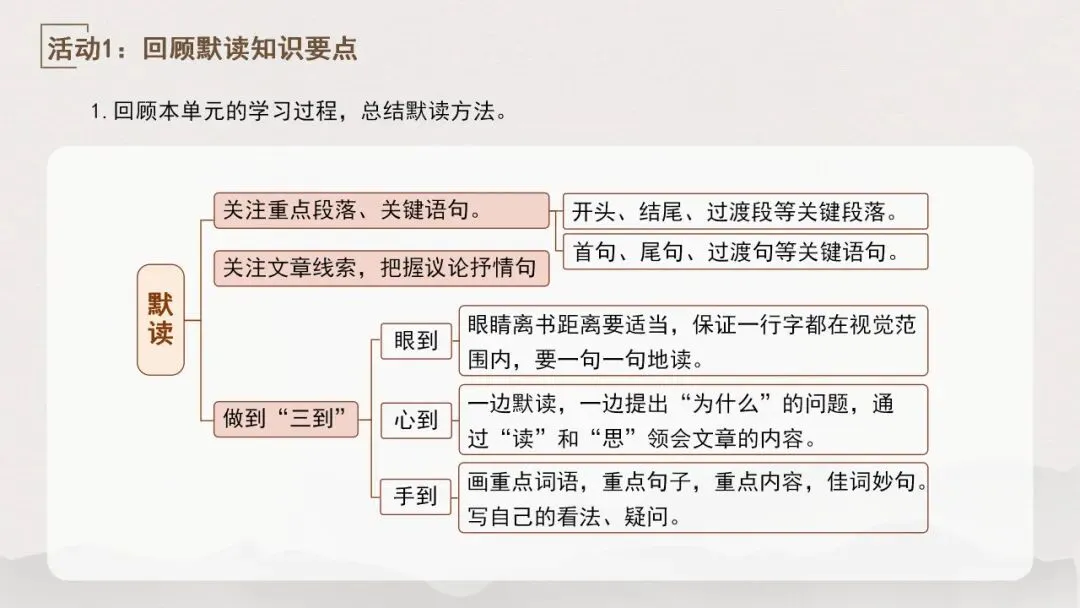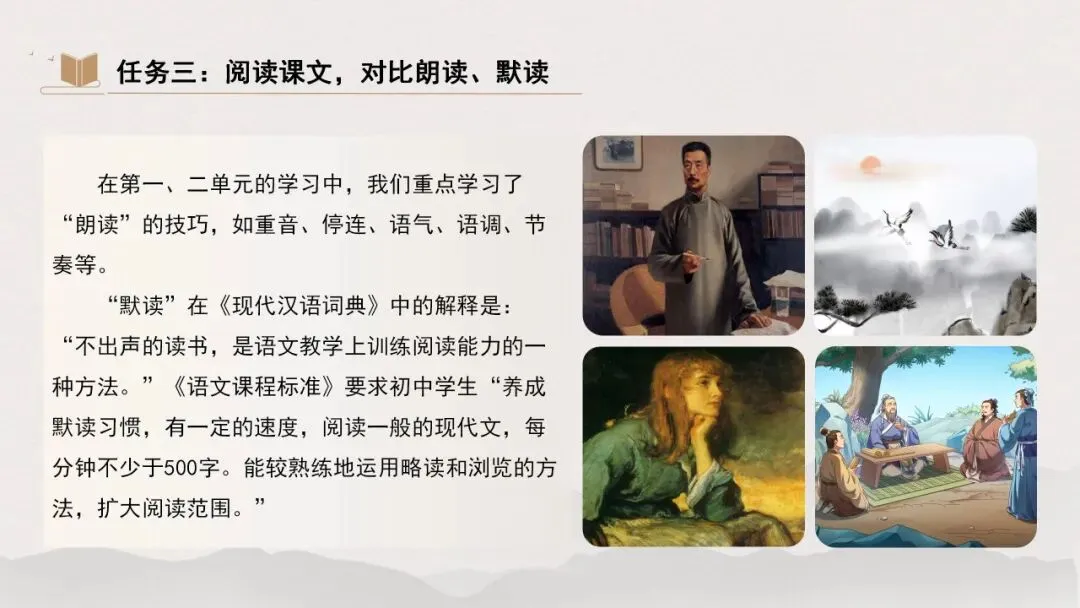 3.归纳朗读与默读的区别,并能灵活运用。