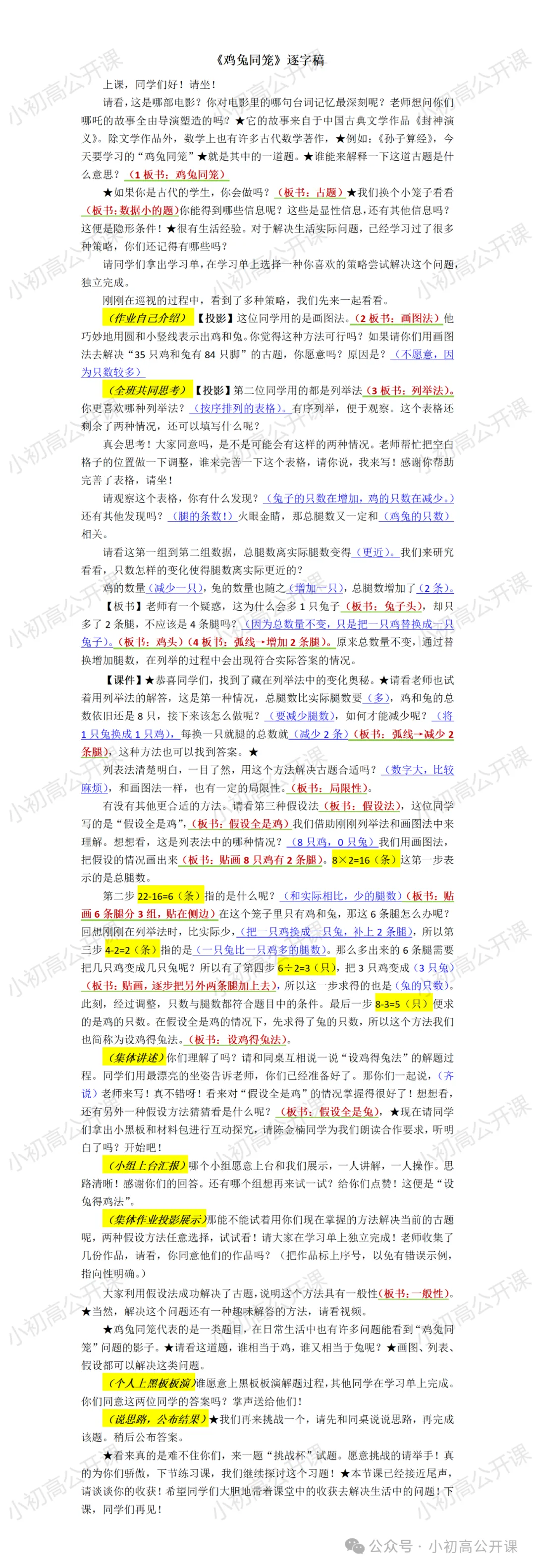 >NO.SX167市优课《鸡兔同笼》教学课件+逐字稿+教学设计+学习单+板书打印