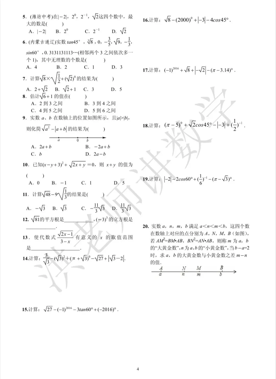18、2020江西中考数学学科考试说明