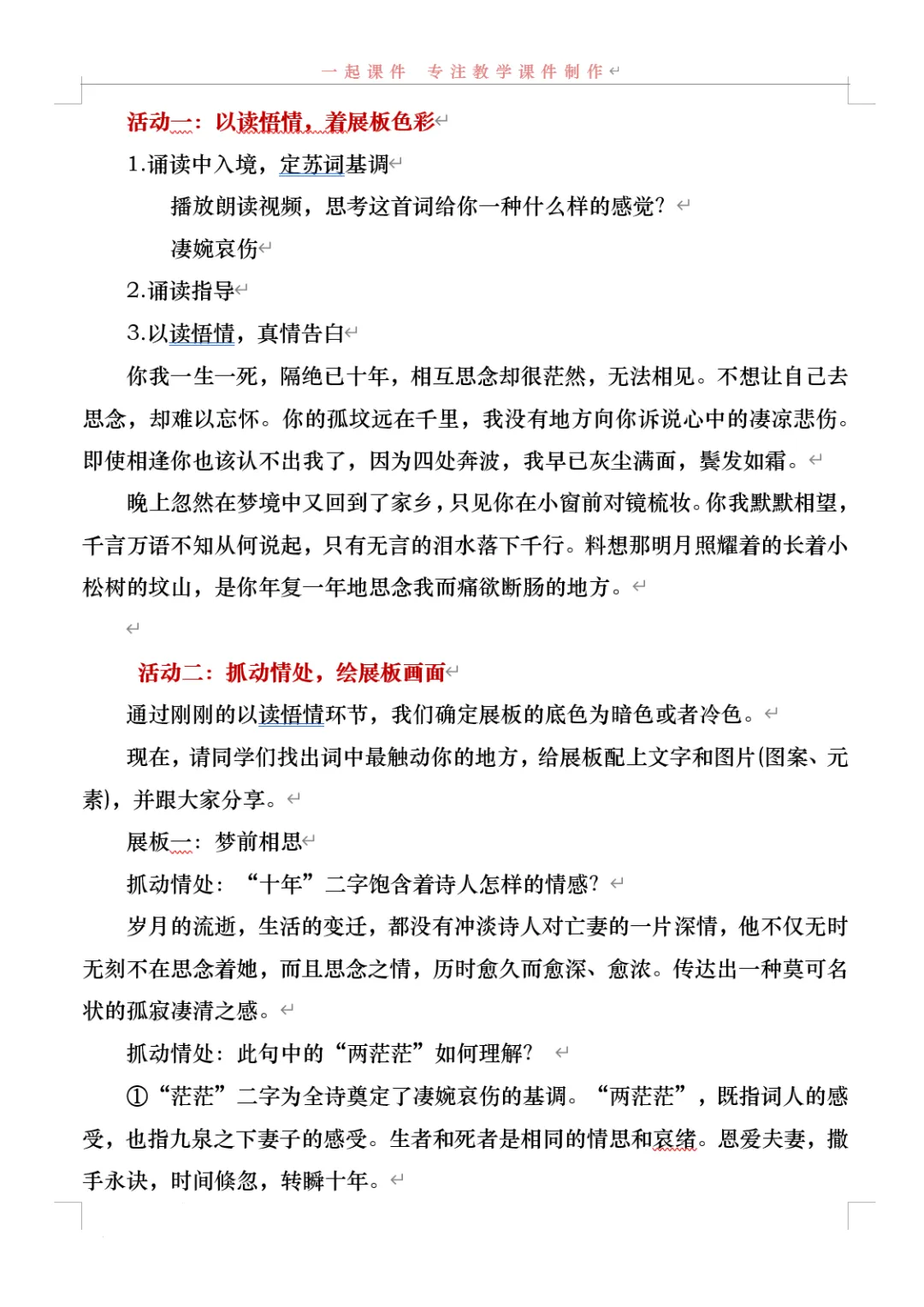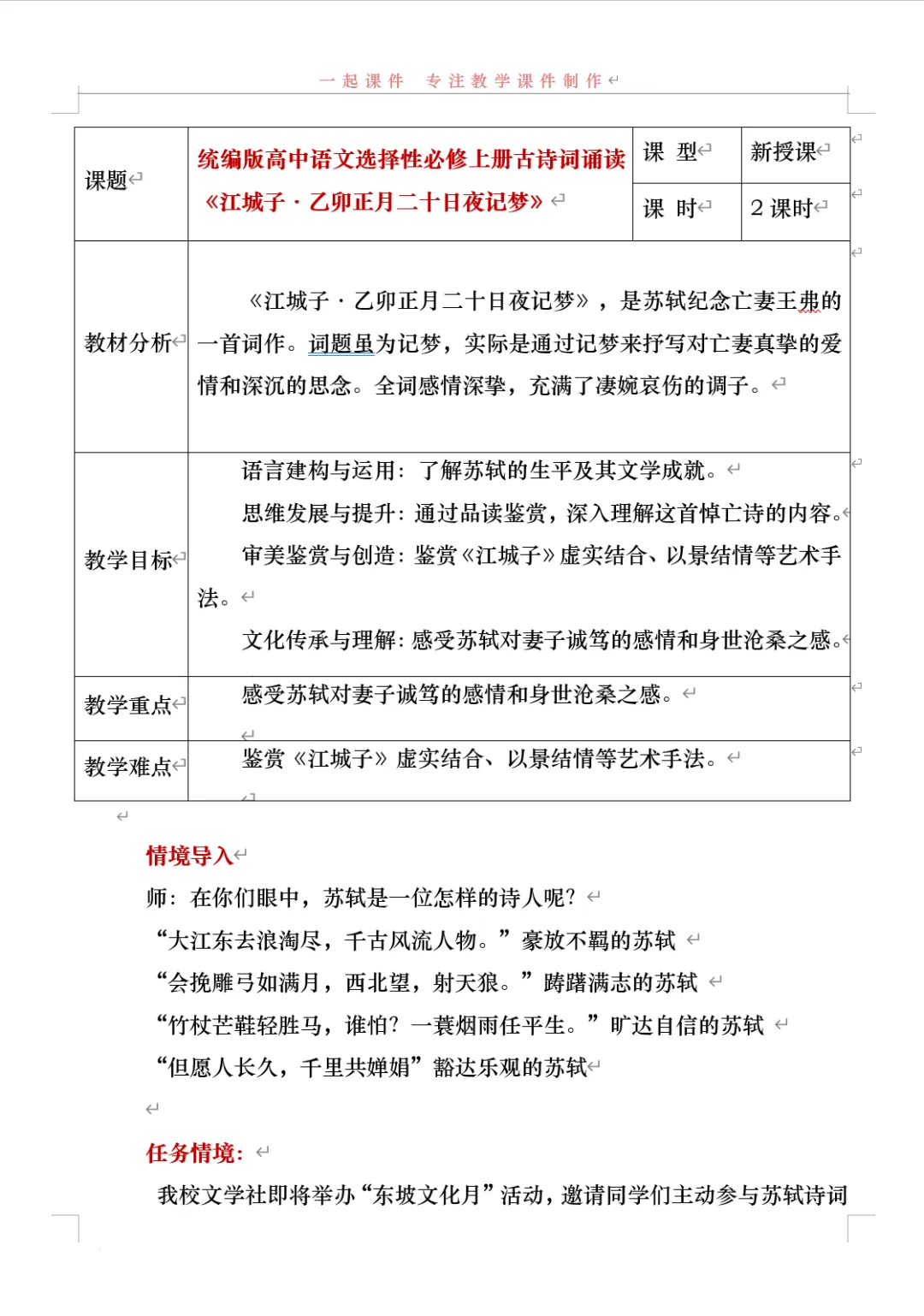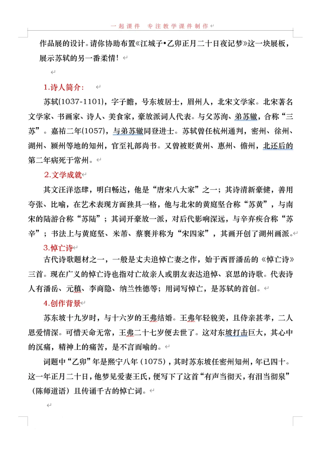 《江城子·乙卯正月二十日夜记梦》,是苏轼纪念亡妻王弗的首词作。词题虽为记梦,实际是通过记梦来抒写对亡妻真挚的爱情和深沉的思念。全词感情深挚,充满了凄婉哀伤的调子。