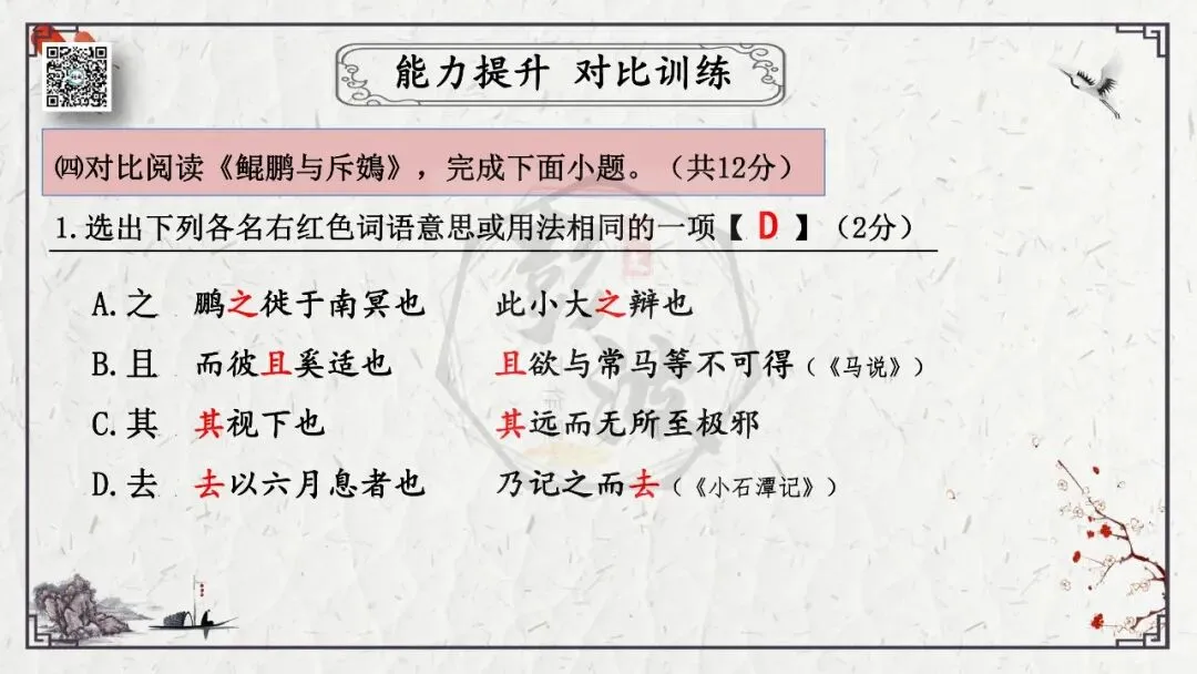 对应考查点:①积累字词、句式等,翻译句子。②理解鉴赏文本。