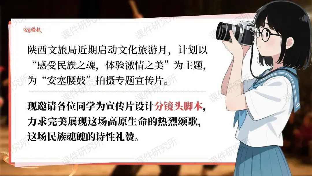 【市级优质课一等奖】八下《安塞腰鼓》课件以“拍摄宣传片”为情境主线,三个任务感受热烈的高原生命之美!