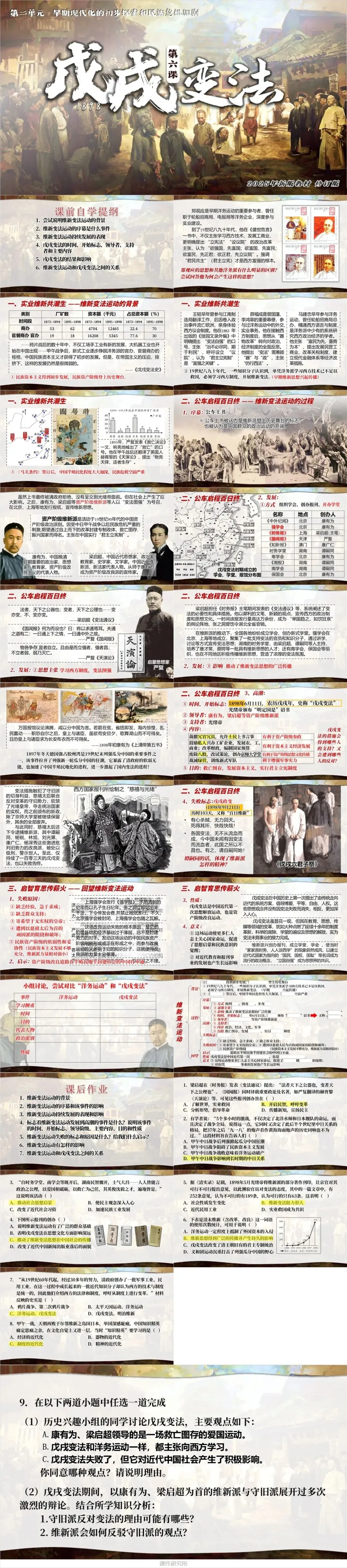 再来看看第六课《戊戌变法》,以 “维新变法运动的‘兴起 — 发展 — 高潮 — 失败 — 反思’为脉络,串联‘危机倒逼变革’的历史逻辑”。
