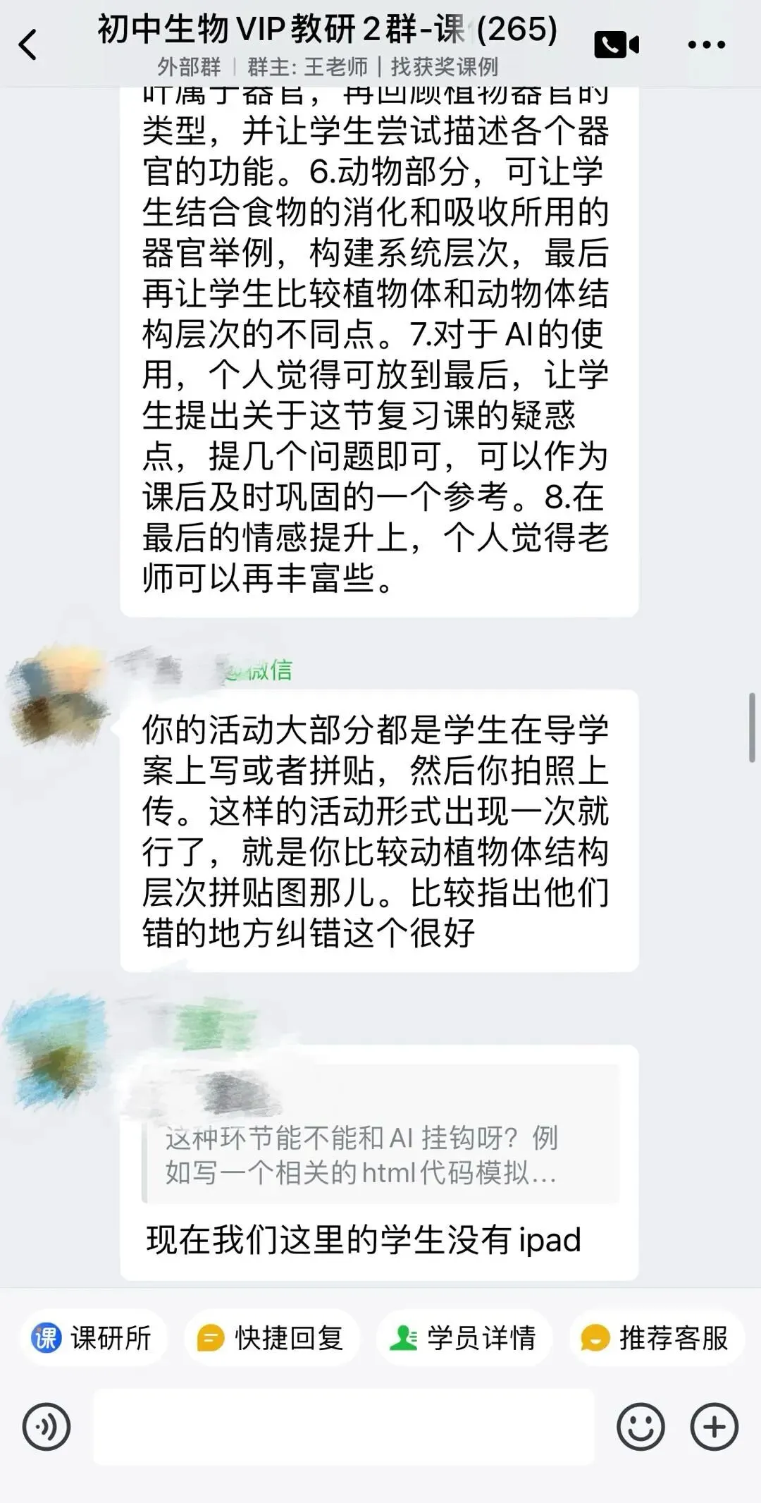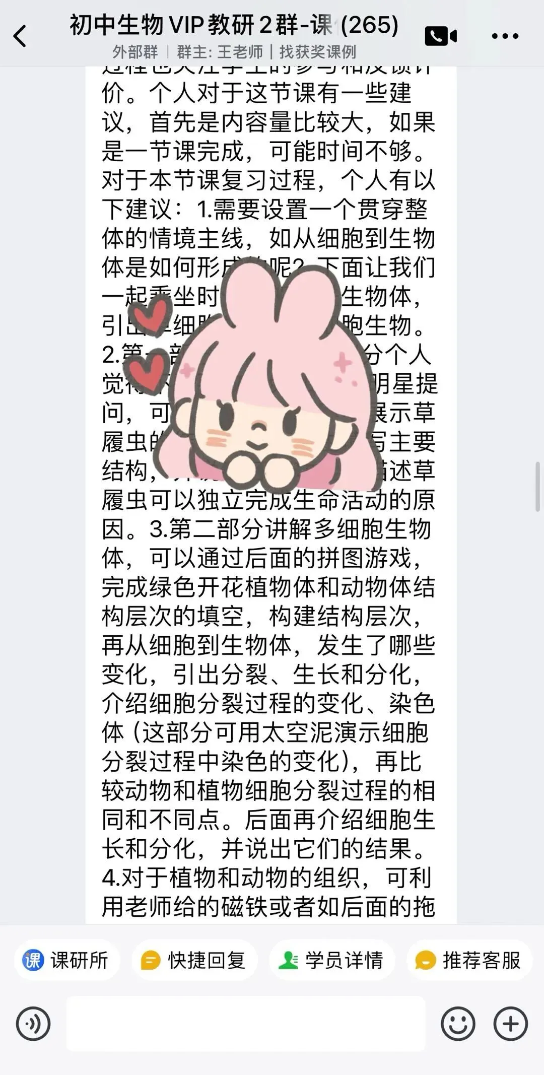 如果想观看磨课直播回放以及获取课件,欢迎加入初中生物教研群,群内每周都有1-2场活动,我们会邀请优秀的一线老师,通过直播的方式分享教学干货,比如获奖课例分享、赛课经验分享、以及正在进行中的八下新教材分析等等,全是实用性内容。