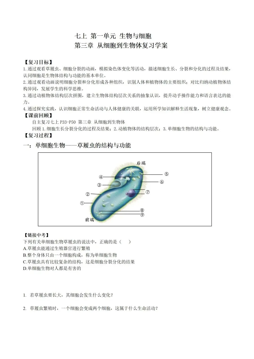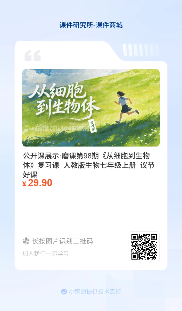 今天分享的是一个复习公开课课件七上人教生物《从细胞到生物体》。