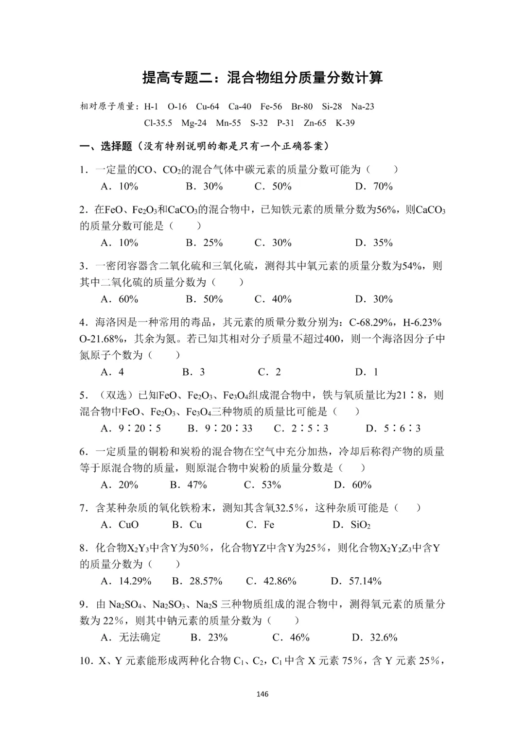 份提高专题卷