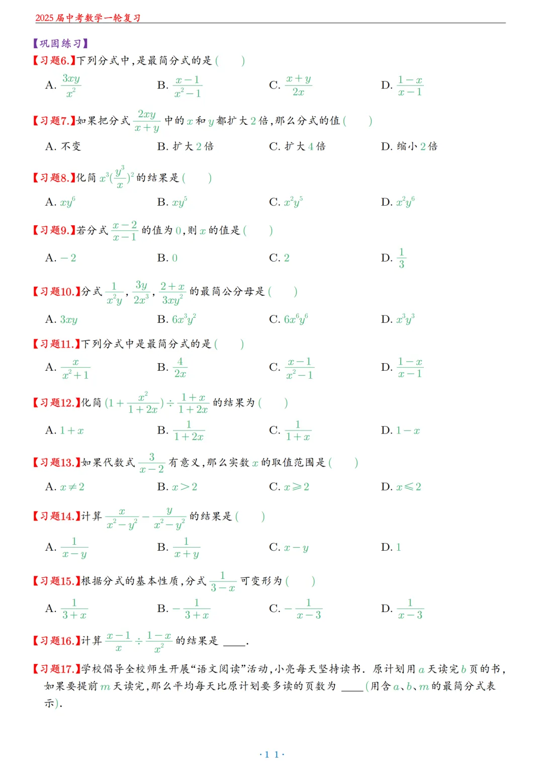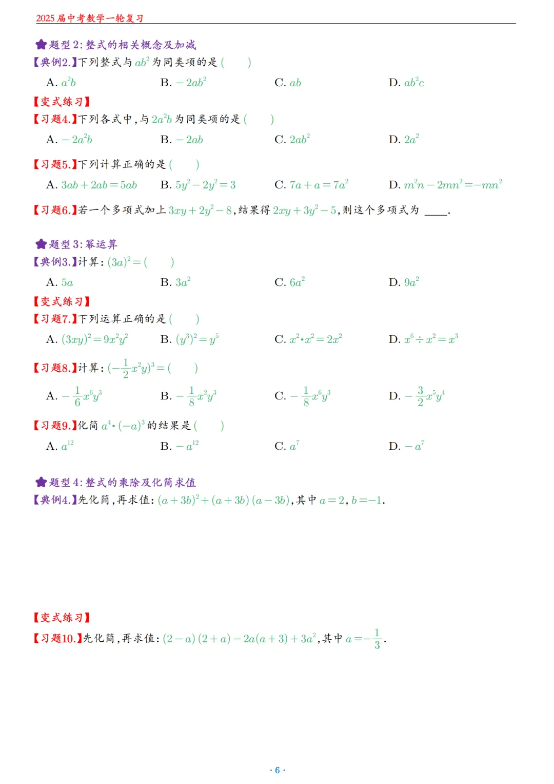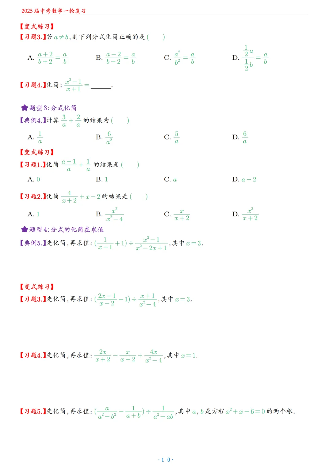 通过针对性训练,可有效提升运算熟练度和准确率,为综合题解题奠定基础。这套练习,推荐同学们都来做一做,相信你一定收获满满!