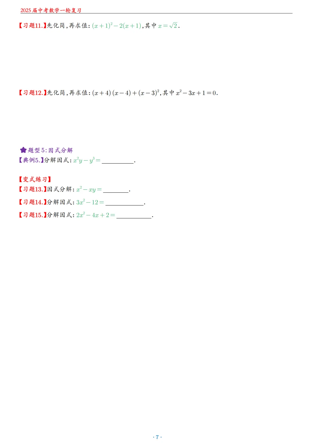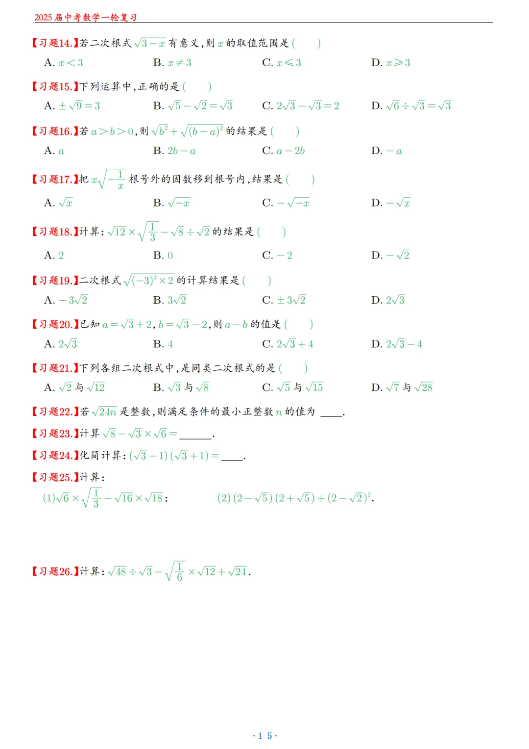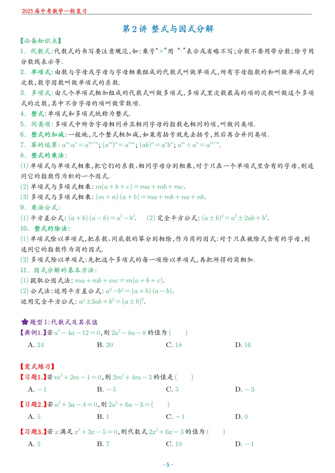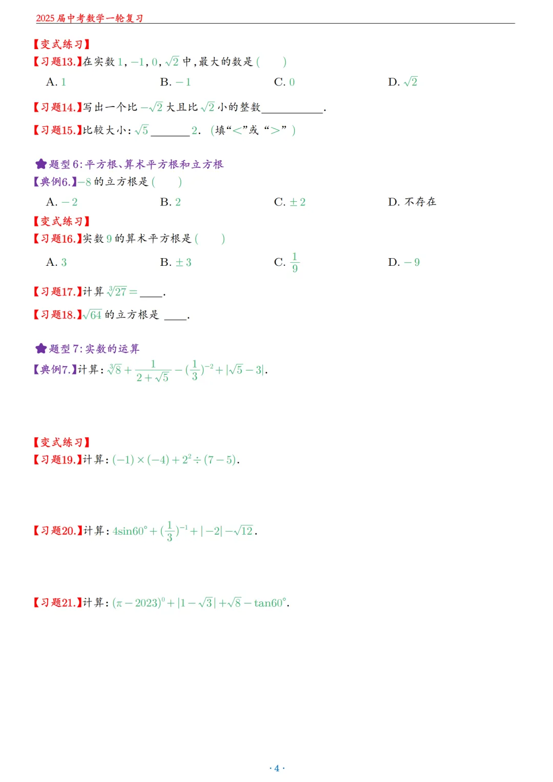通过针对性训练,可有效提升运算熟练度和准确率,为综合题解题奠定基础。这套练习,推荐同学们都来做一做,相信你一定收获满满!