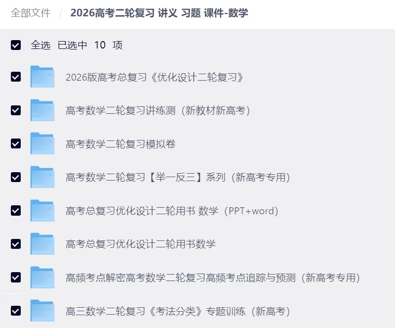【高中】2026高中数学高考二轮复习讲义+二轮复习讲练测+二轮复习模拟卷+考法专题训练(新高考)
