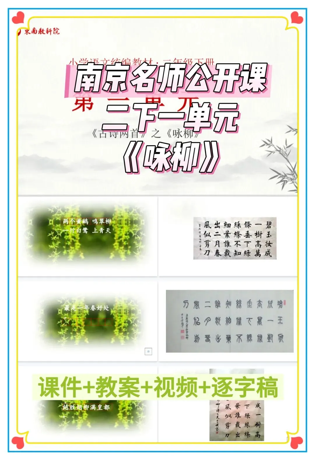 1.古诗二首中有两首古诗:《村居》和《咏柳》,今天我们要学习其中的一篇《咏柳》。
