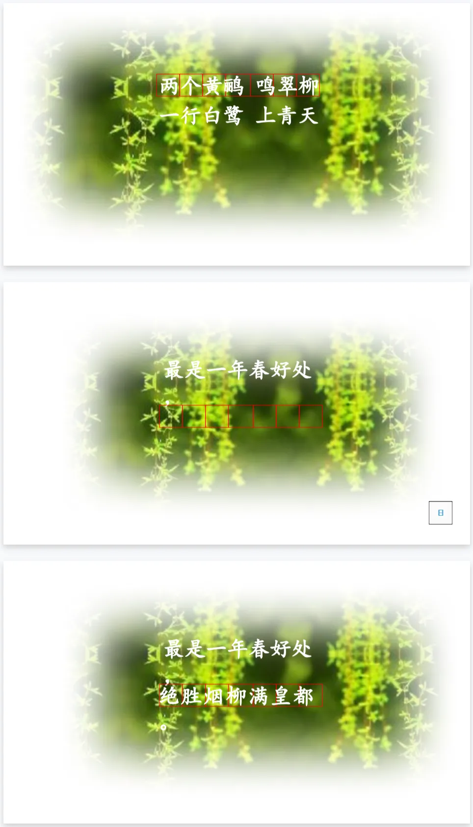 (两个黄鹂鸣翠柳)一行白鹭上青天;最是一年春好处(绝胜烟柳满皇都)