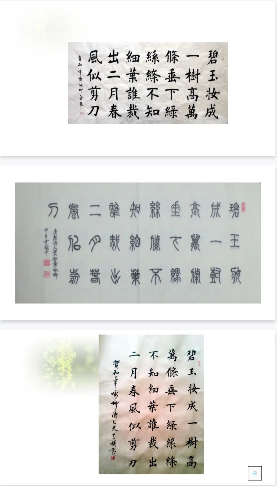 (4)再读一读(出示各式各样字体的古诗,让学生们读。)