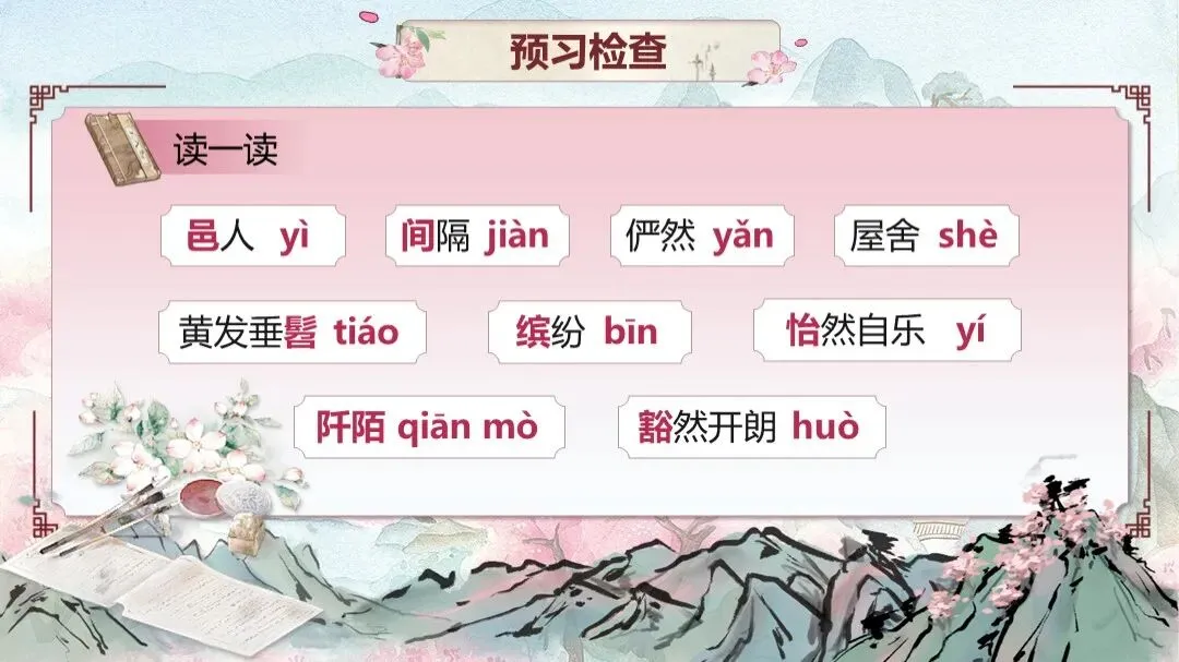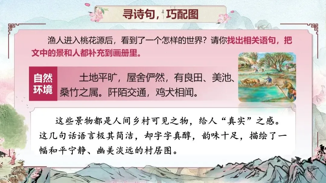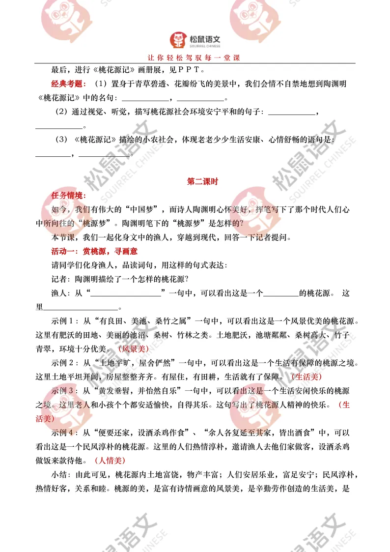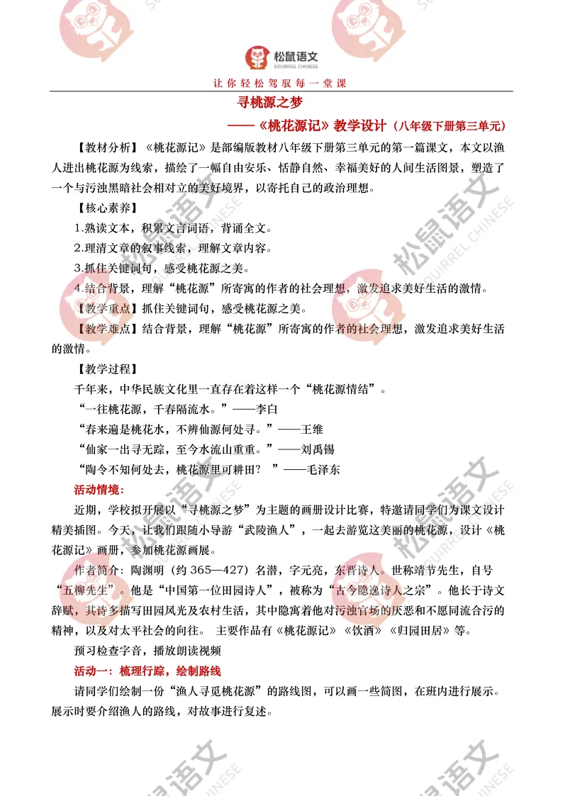 《桃花源记》是部编版教材八年级下册第三单元的第一篇课文,本文以渔人进出桃花源为线索,描绘了一幅自由安乐、恬静自然、幸福美好的人间生活图景,塑造了一个与污浊黑暗社会相对立的美好境界,以寄托自己的政治理想。