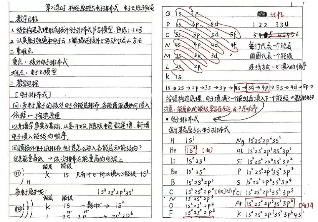段雪玲老师的教案,以构造原理为锚点,用 “能级填充图 + 实例练习” 拆解电子排布式,又通过量子力学逻辑衔接电子云与原子轨道,补全运动状态的抽象认知。从基础排布到量子数规律,层层递进,让抽象的结构知识落地成可练、可辨的实用框架。